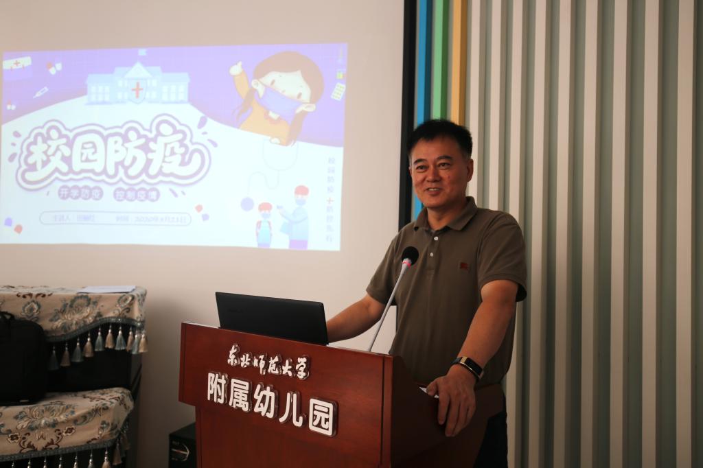 8月17日至21日,按照教育部《幼儿园新型冠状病毒肺炎防控指南》和长春市教育局《关于做好2020秋季学期开学准备工作的通知》要求,幼儿园开展全园教职员工防疫培训,落实防控预案,决不漏掉任何细节。缴润凯园长结合“有爱心、大胸怀、善思考、求卓越”的东师附幼人精神,围绕幼儿园疫情防控工作、新阶段下东师附幼文化建设、幼儿教师的使命担当和教育情怀等内容作了讲座;张泽东书记根据新时代对党员的要求,针对新学期党支部工作做出具体部署。