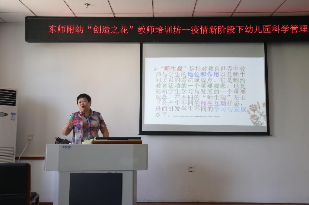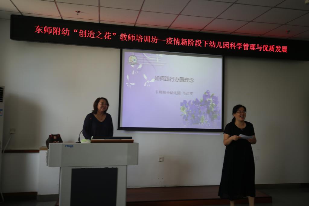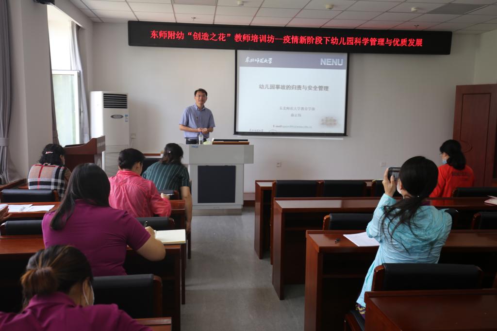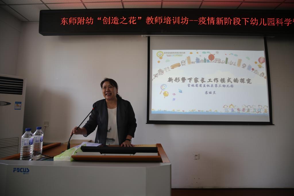 吉林省省直机关第三幼儿园苏丽兰园长、长春市人民政府机关第二幼儿园张馨予园长、东师附小中信幼儿园马达英园长,分别从新时期家长工作新模式、幼儿伤害事故预防、办园理念的践行等方面对教师进行了系统培训,为教师专业发展提供了科学指导。