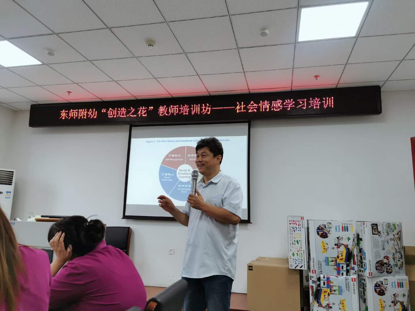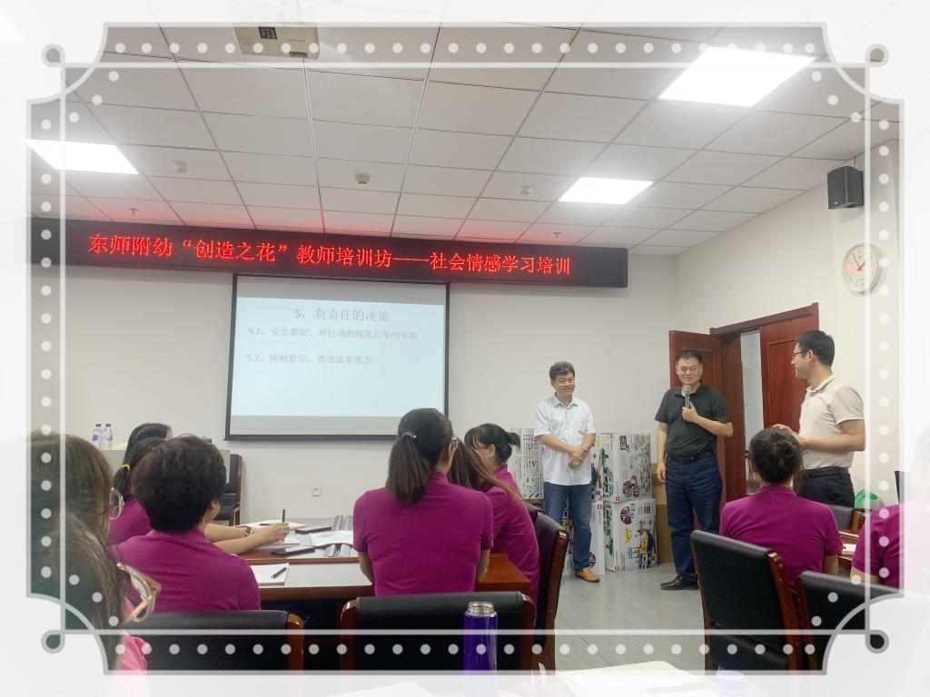 依托教育部幼儿园园长中心与联合国儿童基金会的“社会情感学习”(SEL)合作项目,幼儿园还邀请心理学院盖笑松院长,开展了社会情感学习专项培训,旨在进一步提升教师的社会情感学习实践能力。讲座中,盖笑松教授从了解自己、了解他人、自我管理、负责的决策、社会技能五大方面二十条内容,对幼儿情感学习进行了由浅入深的剖析,不仅使全体教师在理论层面上有所提升,更加激发了全体教师参与特色课程创编的热情!