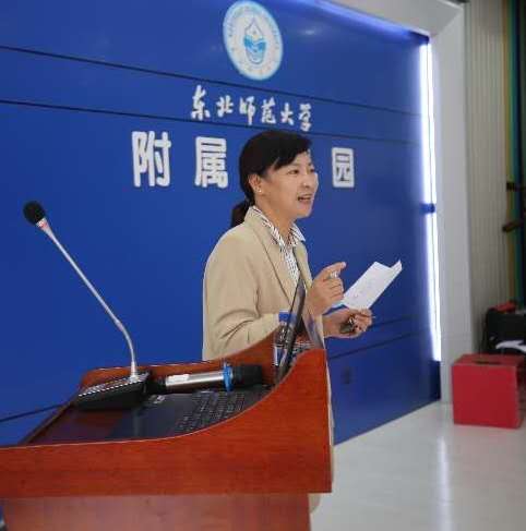 田丽红老师代表工作三十年的教师发言。她表示,工作三十年来,无悔自己的青春选择,无悔选择东北师范大学附属幼儿园。她将以感恩的心回报幼儿园,并且用饱满的热情积极工作,不忘初心,牢记使命,为幼儿园发展贡献自己的全部力量。