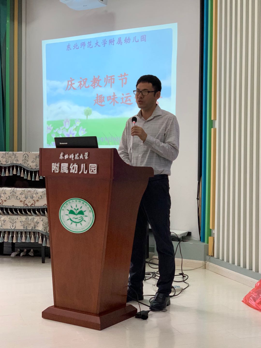 教师节庆祝活动精彩连连。我园直属党支部张泽东书记代表园领导致节日贺词。张书记强调,全体教师要认真学习习近平总书记关于教育的重要论述精神,要不忘立德树人初心、牢记为党育人、为国育才的使命,要传承东师附幼的优良传统,尤其是老一辈东师附幼人的奉献精神,更要积极探索新时代教育教学方法,提升个人教育教学素养,发挥示范引领作用。