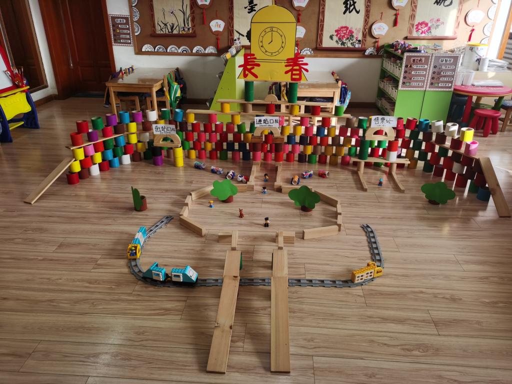 游戏是幼儿园孩子最基本的活动内容,特别是建构游戏深得孩子们的喜爱。为了更好地满足幼儿对游戏的需求和渴望,帮助幼儿在构思、建构和思考中获得更好的发展,提升幼儿的科学认知和空间思维能力,朵朵组开展了“我和我的家乡”建构主题活动,为了让孩子在建构游戏中了解我们美丽的家乡,并从中收获快乐,积累经验。2020年10月21日,朵朵四班宝贝们开展了长春火车站的建构活动。