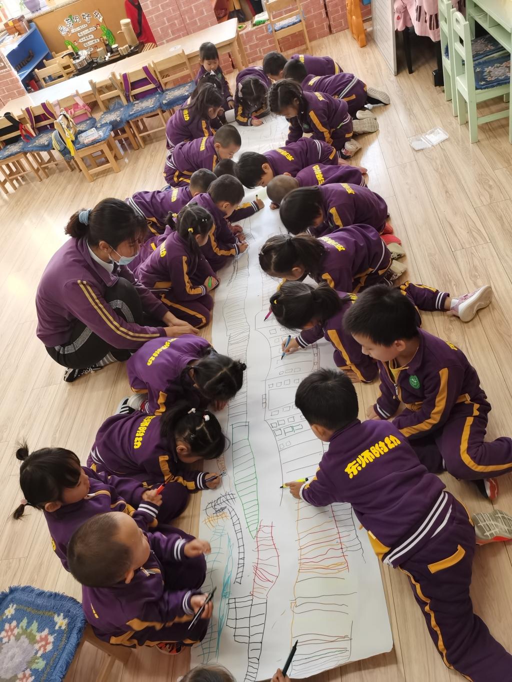 为了更完整进行长春火车站的搭建,宝贝们用自己的想象力和创造力绘制出火车站设计图。