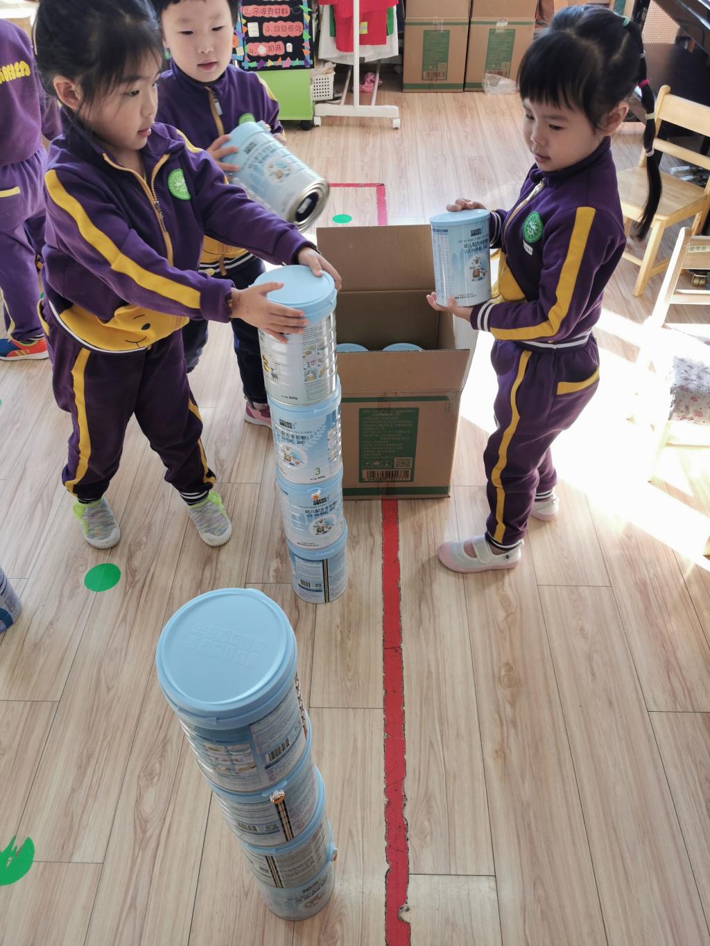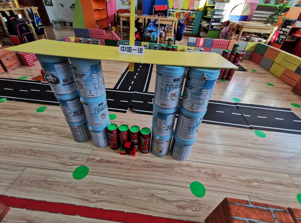 “沅沅,我们用奶粉桶建一汽大厦吧。”