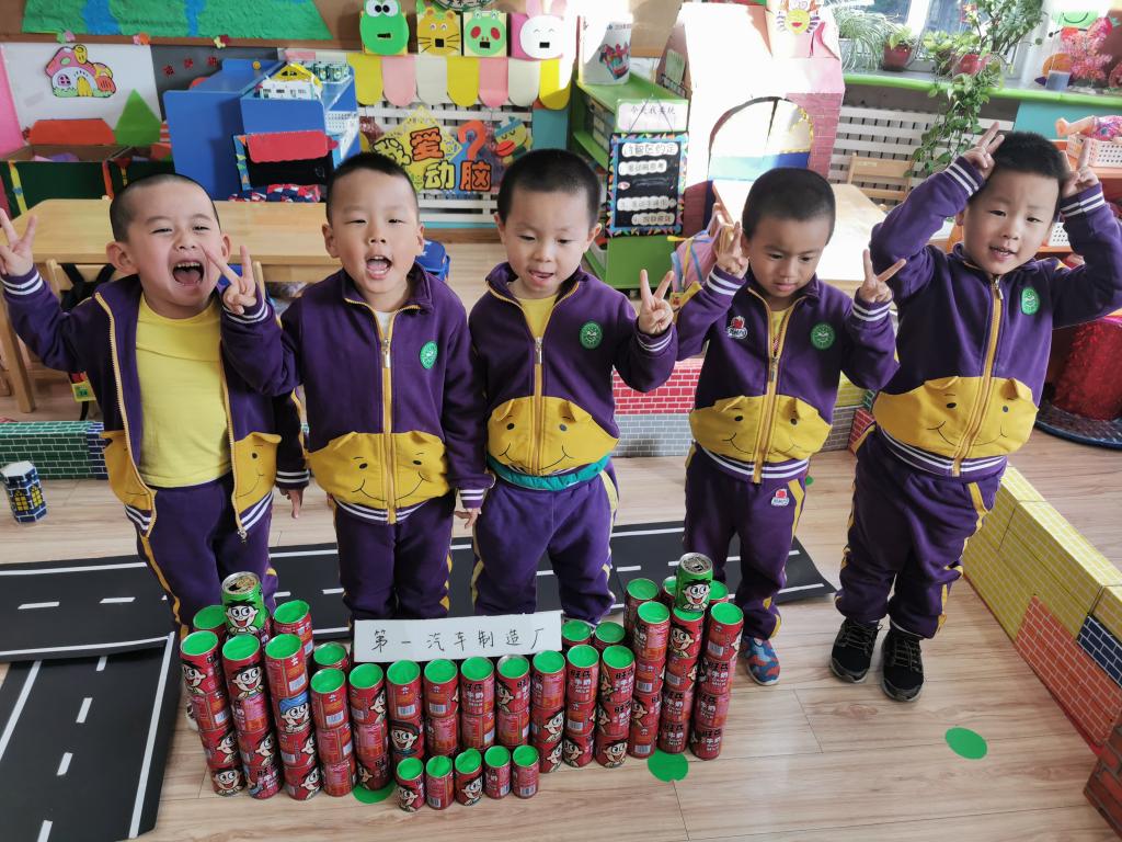 虽然在搭建过程中也经历了多次的失败,但孩子们并没有放弃,他们互相鼓励。朵朵三班的“一汽大厦和厂房”在幼儿的共同努力下顺利完工。整个作品不仅新颖别致,也承载着幼儿五彩斑斓的梦想。