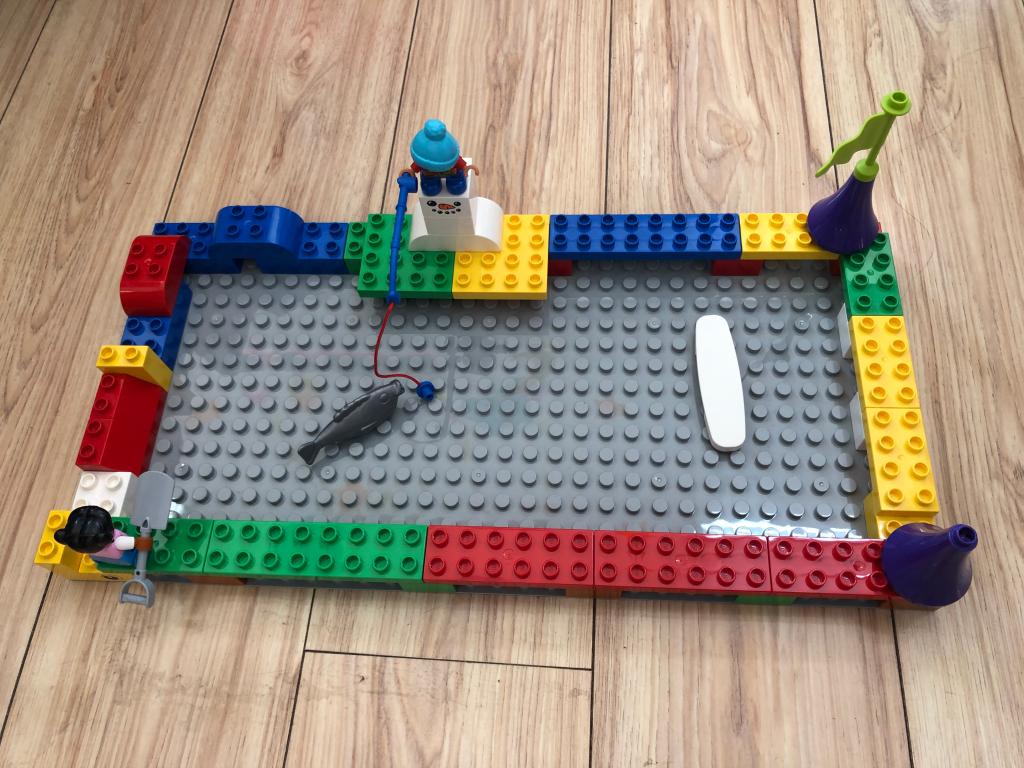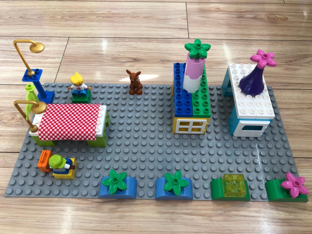用乐高玩具在房子的周围搭建了城堡、养鱼池,发挥了充分的想象力和创造力。