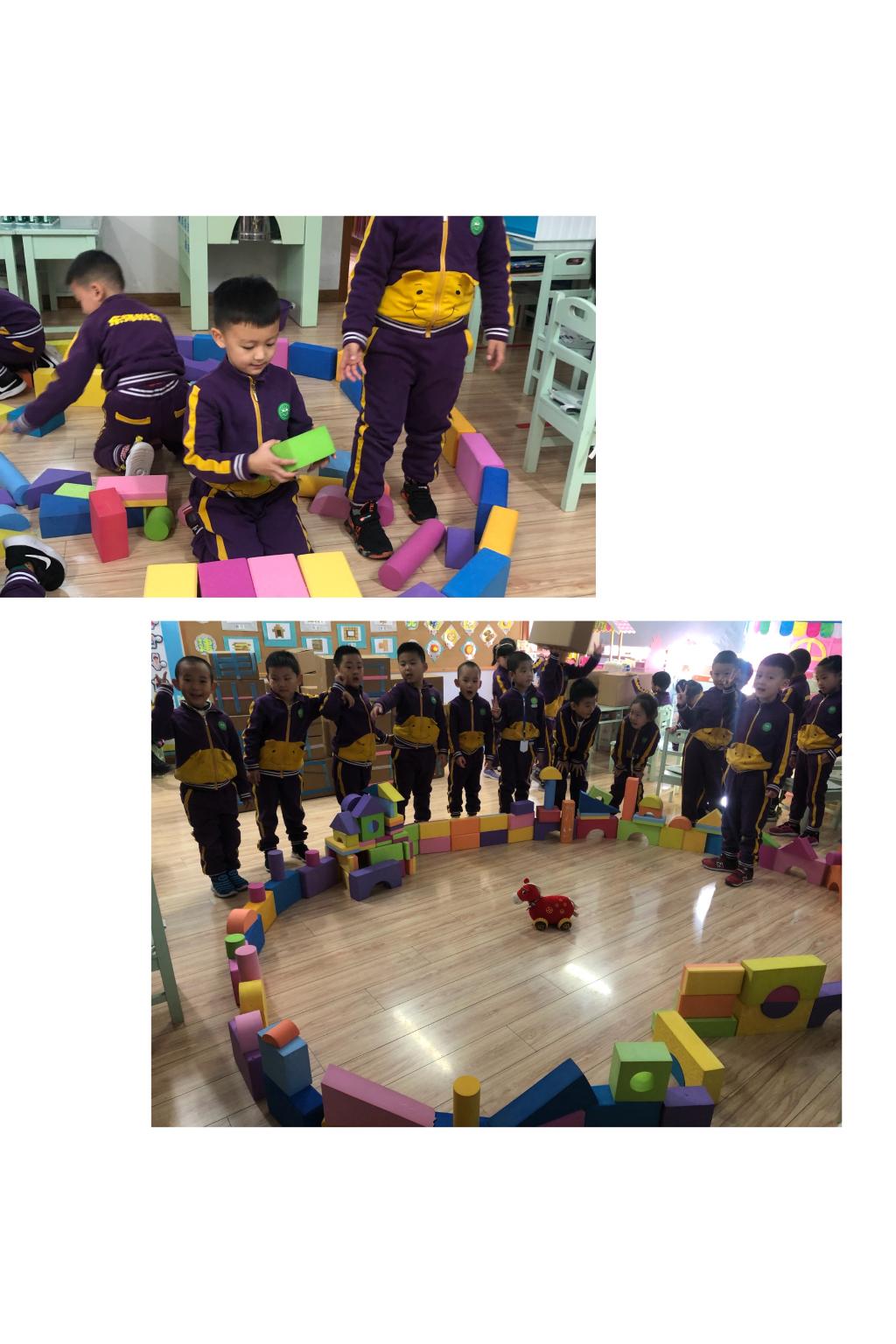 一茗说:用泡沫积木先搭建一个围墙,这样小朋友在里面玩才安全;