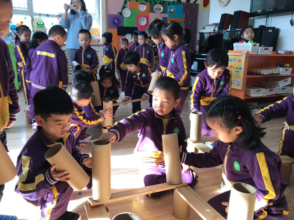 大功告成,震撼而又美丽的作品,是孩子们集体合作的智慧结晶。简单的材料,堆砌出高品质的快乐。看起来简约的建构作品,呈现出孩子们的细致观察、团结合作与一次次失败后的勇于尝试。既提高了建构技能,也收获了成功的喜悦。