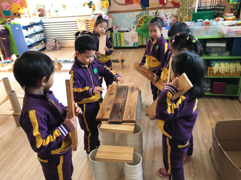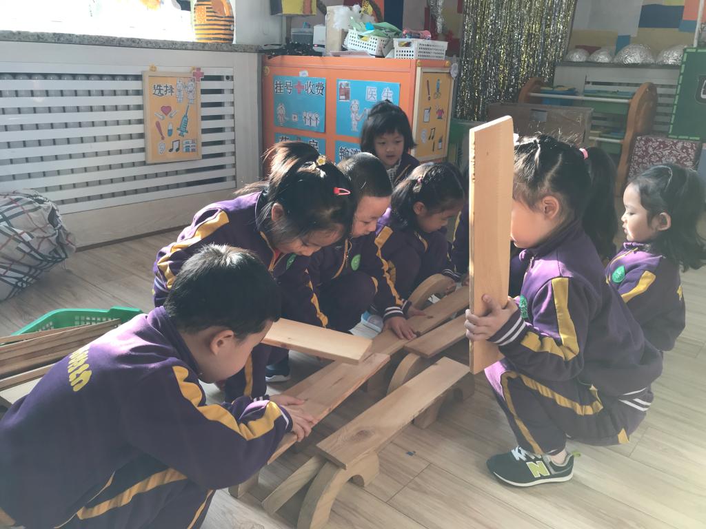 认识了各种各样的桥后,初次搭建活动开始了,最初,孩子们搭建的桥是这样的。