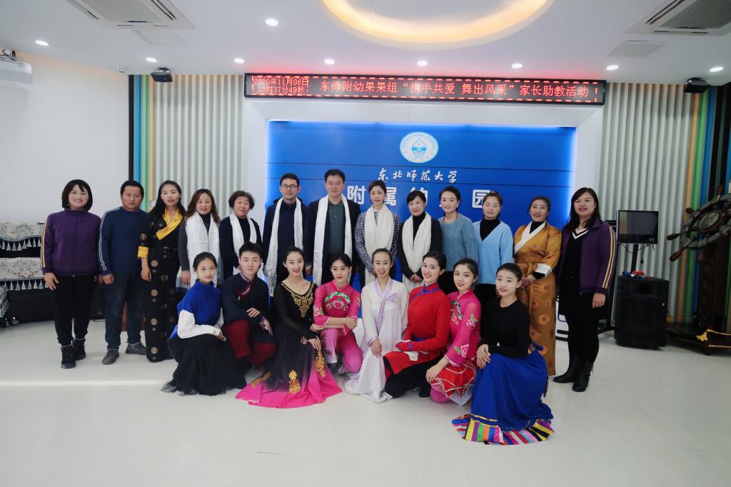 美美小朋友的妈妈平原是吉林艺术学院舞蹈学院副教授,硕士研究生导师,舞蹈学院民间舞教研室主任。她结合民族特色及艺术魅力、不同的地域文化和民俗风情,以蒙古族、维吾尔族、藏族、朝鲜族、东北秧歌几个代表性的民族的服装、习俗、习惯、特点以及民族舞蹈的动作为主要内容,为小朋友进行介绍和展示。