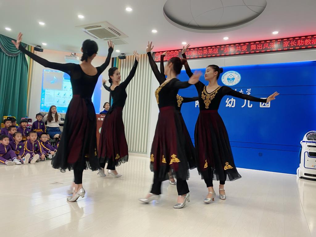 家园合作是幼儿园教育的重要组成部分,家长也是幼儿园的重要合作伙伴,发挥家长专业和资源优势,请家长走进幼儿园,参与幼儿园的教学活动,一直是我园家园共育的重要内容。2020年11月6日,我园特别邀请到果果三班平芳美小朋友的妈妈,带领孩子们感受舞蹈的魅力,了解中国民族民间舞蹈。
