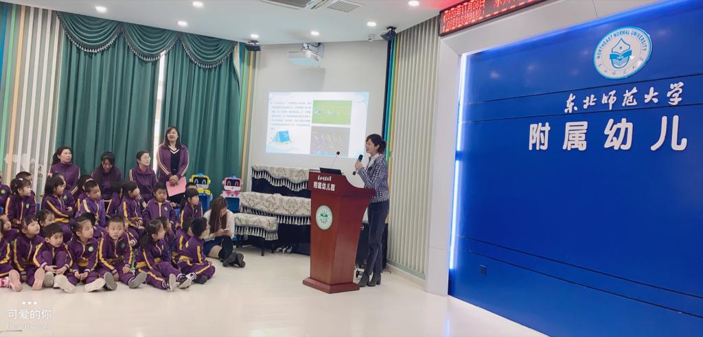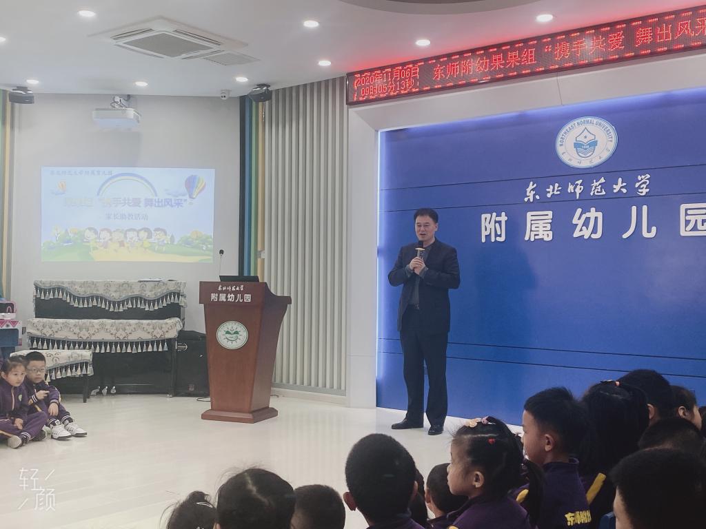 缴园长在活动开始前讲话。他在讲话中提到,美是人类永恒的追求,每个幼儿心中都有一颗美的种子,幼儿园要为幼儿创造充分的条件与机会,引导幼儿用心灵感受美、发现美,用自己的方式表现美、创造美。非常感谢平芳美小朋友的妈妈为幼儿带来的专业舞蹈展示,让孩子们能在欣赏各民族舞蹈风情的同时得到美的熏陶。