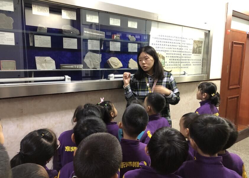 最让小朋友们感兴趣的就是化石区,大家观察到部分古生物、植物的化石。大家通过观察了解到地球约有46亿年的历史,在这漫长的时间里,它经历了多次火山爆发、板块碰撞等,要了解这些经历,研究地层是最主要的途径。生物的生长过程深受地理环境的影响,因此,由古生物形成的化石种类及特点不可避免地打上了当时地理环境的烙印。通过研究地层和其中包含的化石,科学家可以发现不同时期主要生命形式的特点及其变化,并以此了解地球的生命历程和古地理环境。