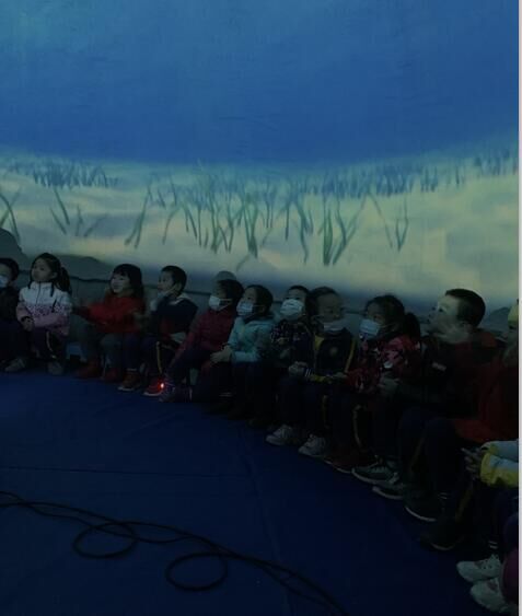 本次带领小朋友参观的就是数字天象仪,数字天象仪通过先进的光学成像技术和专业的天文空间演示系统,将地平线上方的星空投射到天文圆顶上,完美地模仿了自然的夜空和天体运动。