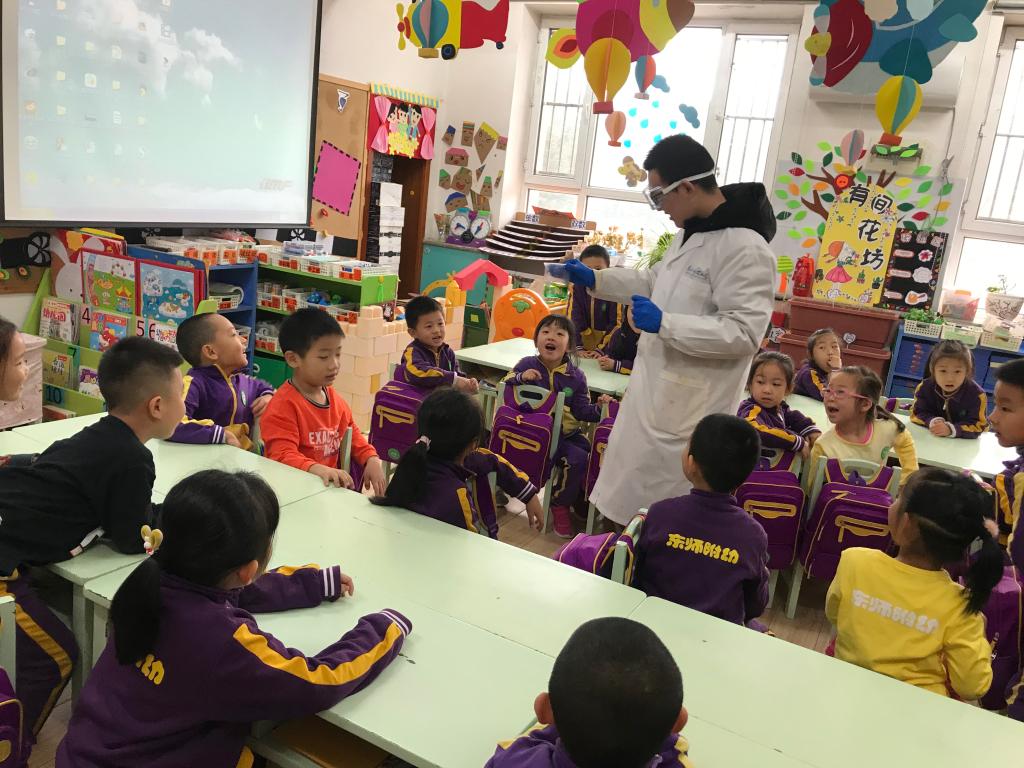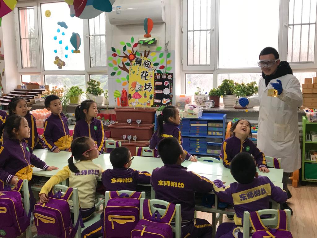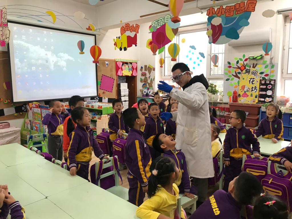 不同的科学实验带来不同的科学体验。借助大学教育资源果果五班邀请到化学学院大哥哥来到了班级带领小朋友们亲身体验科学实验活动。