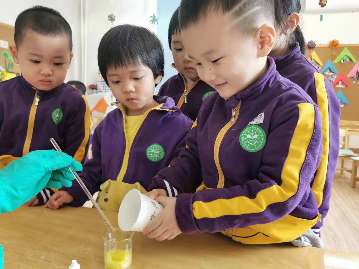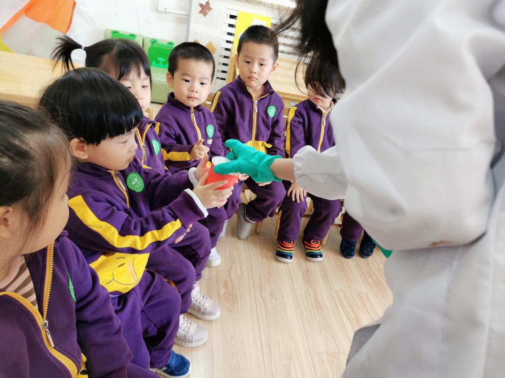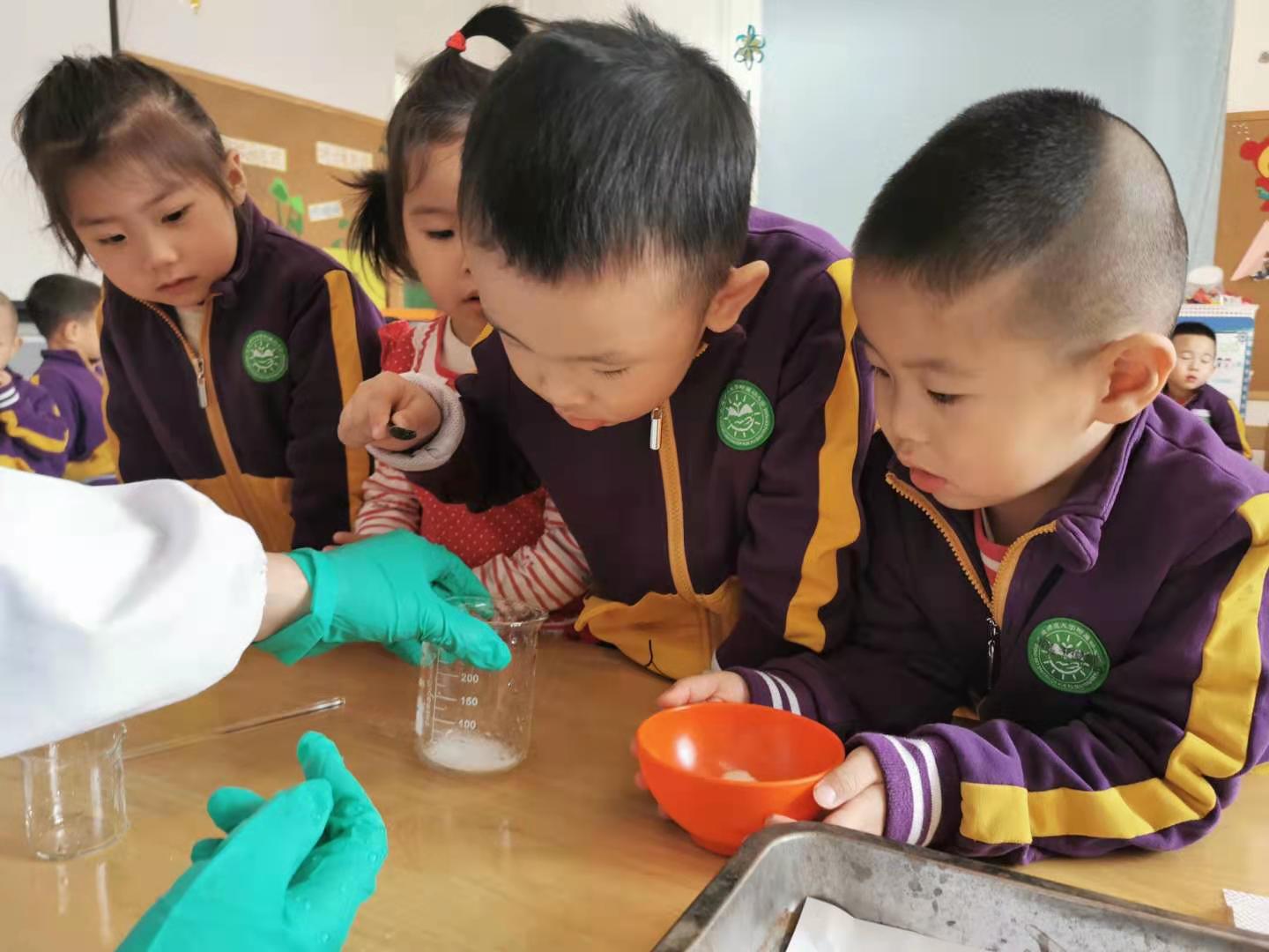 苗苗组充分挖掘东北师大的家长资源,邀请到化学学院的老师和学生们为苗苗组的小朋友们带来了有趣的化学实验。