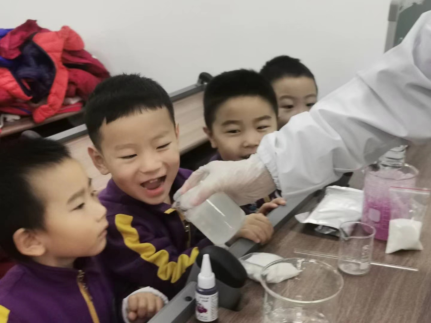 丰富有趣的化学实验,激发了小朋友们的好奇心与探究欲望,小朋友们也通过观察比较等方法,学习到如何发现问题、解决问题。