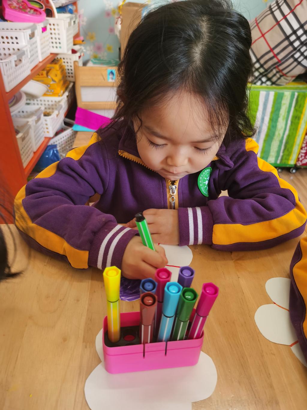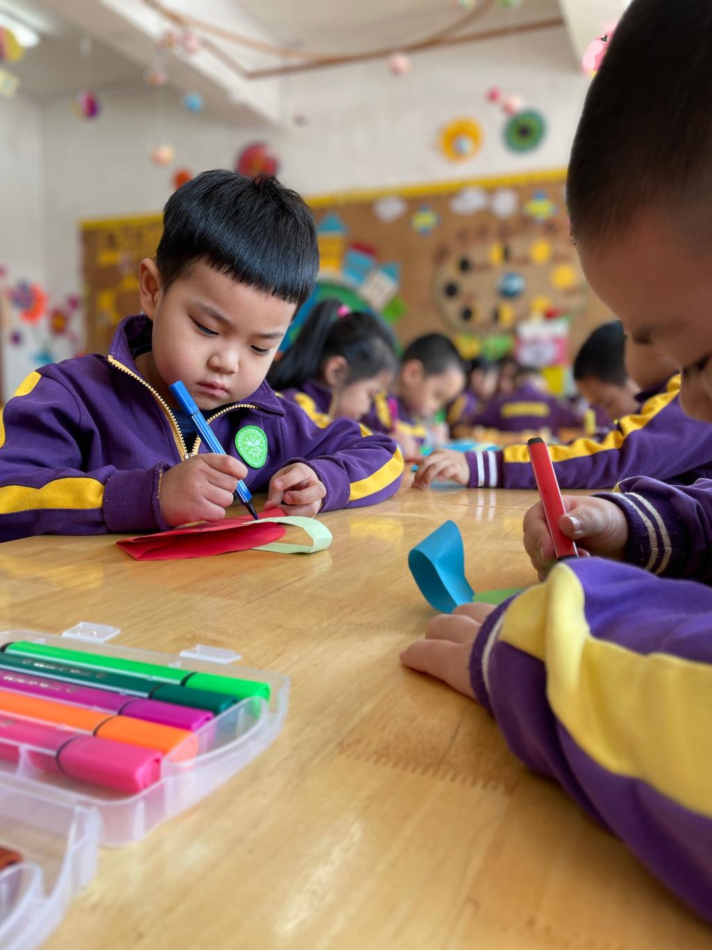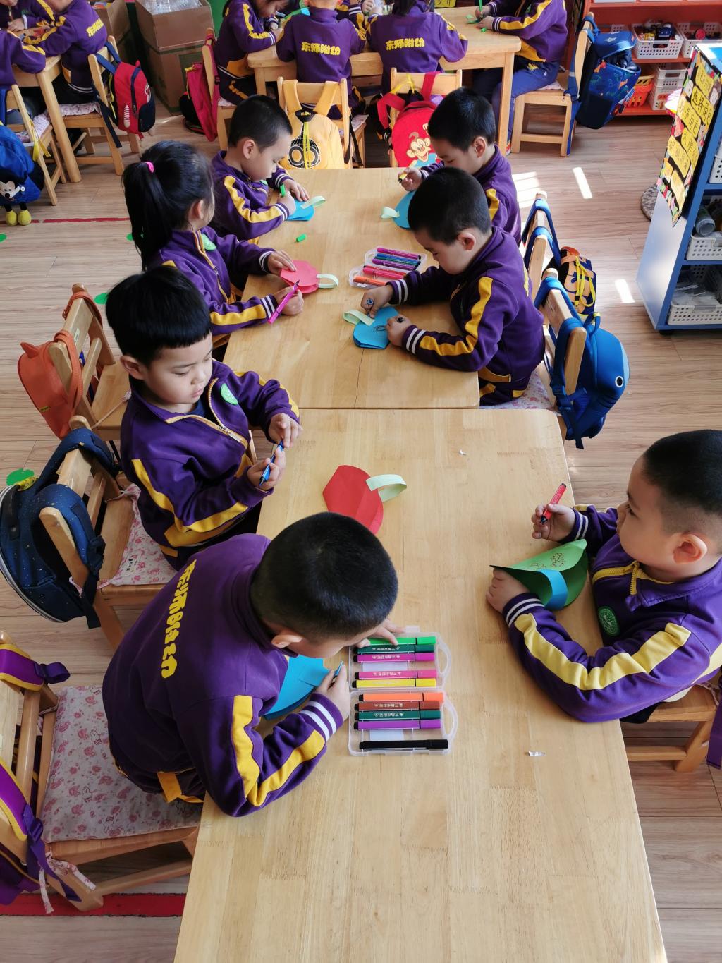 朵朵三班的小朋友用彩纸制作了漂亮的小包包,还创意性的绘画出美丽的花纹,给妈妈不一样的惊喜和感动。