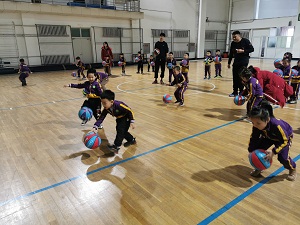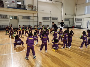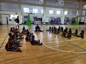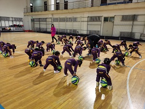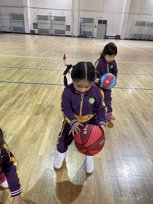 马老师从专业的角度认真的为小朋友们讲解运球正确的手势和姿势。篮球小将们认真学习并练习,努力尝试正确拍球的动作。