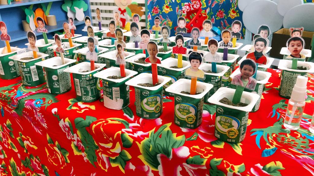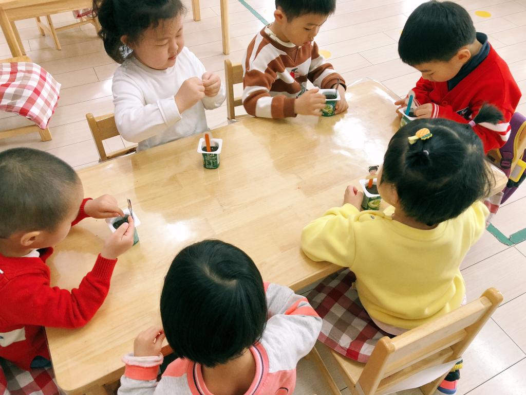 小朋友们一起商定了埋种子的小容器——酸奶盒。他们喝光酸奶后把酸奶盒认真清洗干净并晾干。