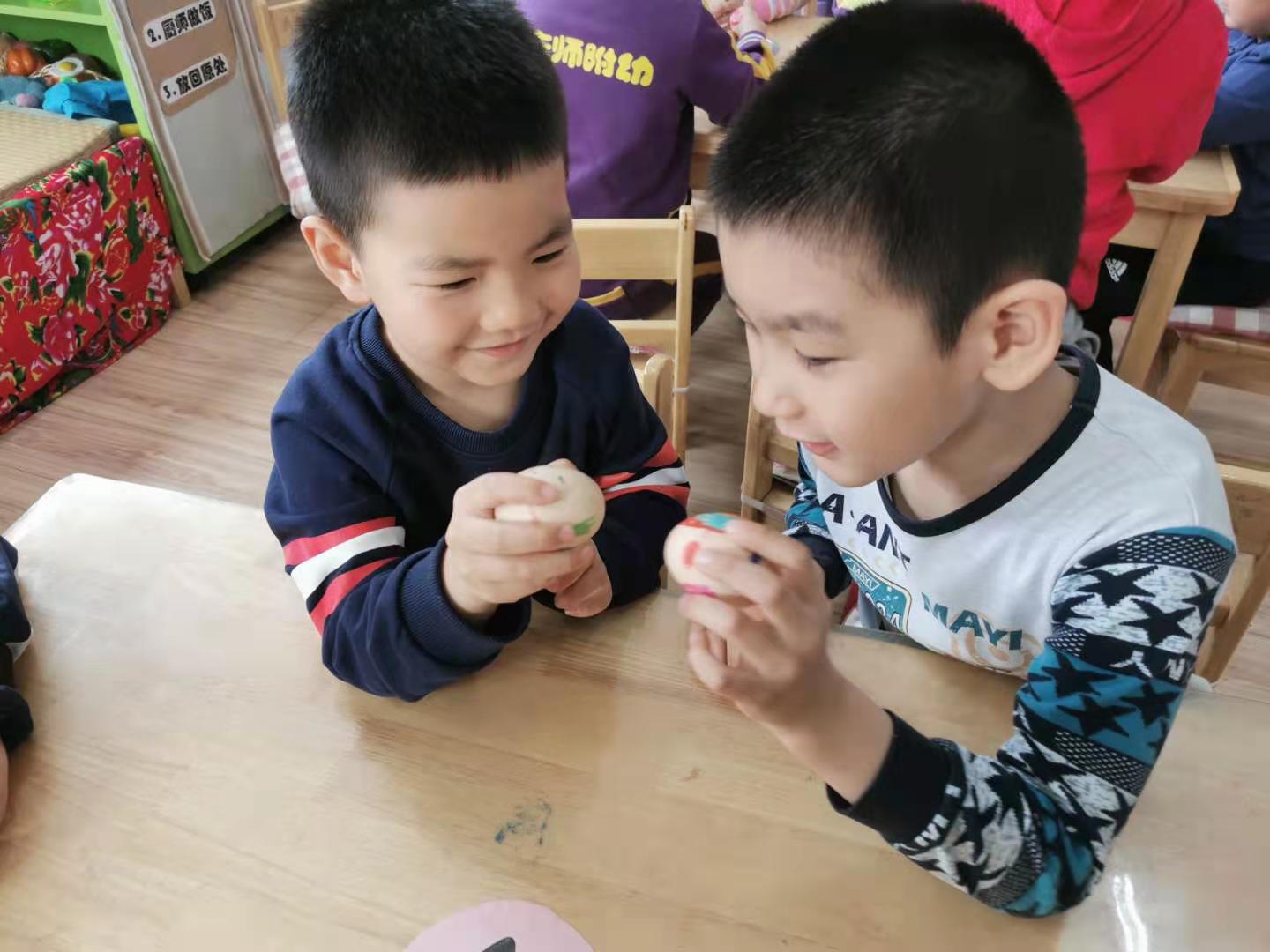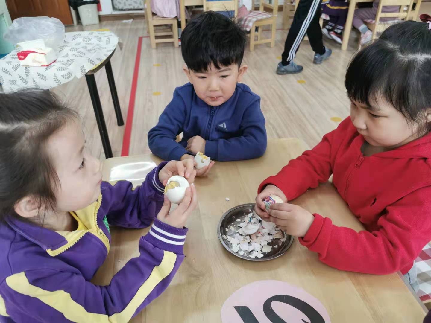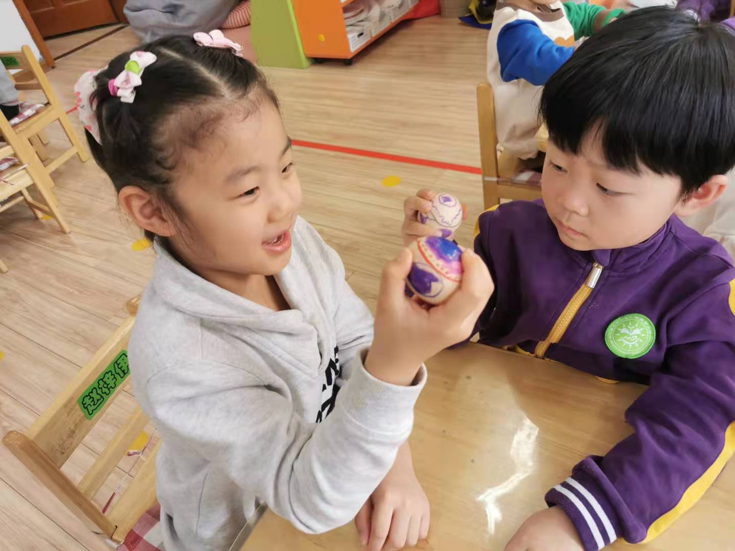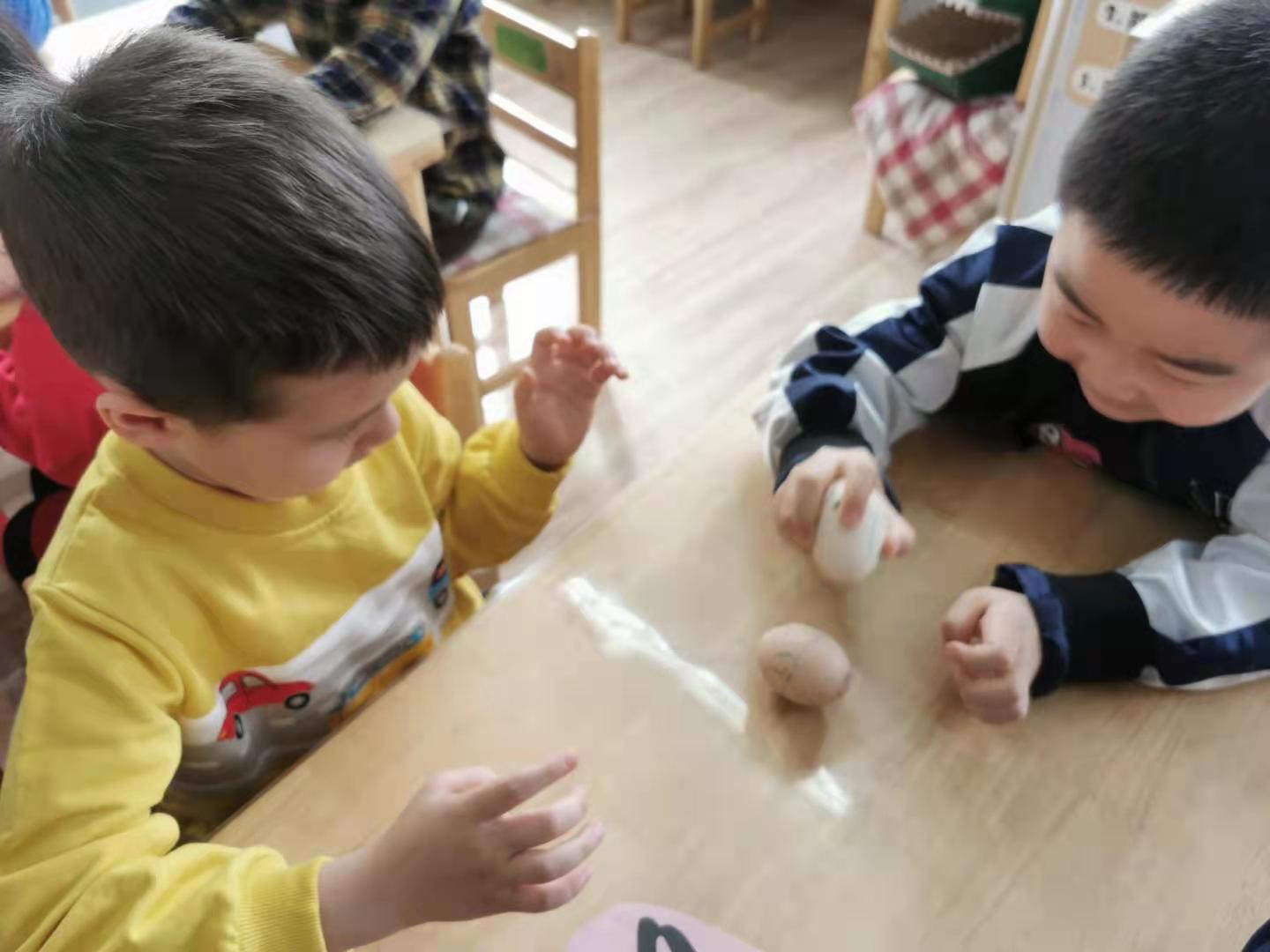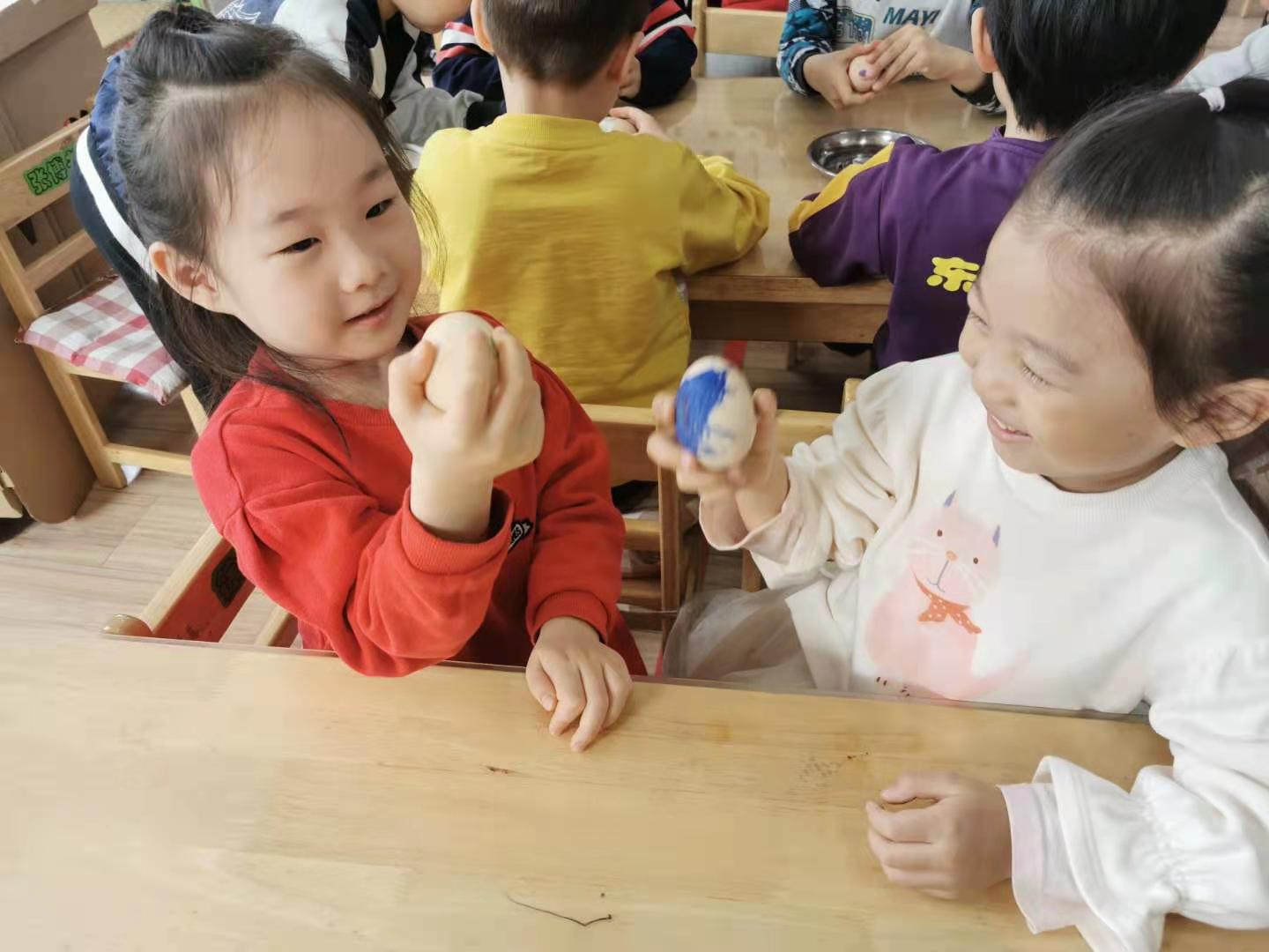 在帮助孩子们了解节日习俗时,他们了解到:吃鸡蛋起源于古代的上巳节,人们将鸡蛋煮熟了以后,用画笔在鸡蛋上画上颜色,然后投入附近的河中,等在下游的人争捞、剥皮而食,食后便可孕育。清明节吃鸡蛋还寓意着着这一年里,无病无灾健健康康。此外,还有“撞鸡蛋”的习俗。清明节对于小朋友们来说也许比较陌生,但是小朋友们对于在清明节吃鸡蛋、撞鸡蛋这一习俗却很熟悉,这也是孩子们的最爱。大家都会纷纷拿着自己家煮的鸡蛋逐一碰撞,图个好彩头,看谁的鸡蛋硬。如果哪个小朋友的鸡蛋皮结实,把另外的鸡蛋撞破了,那这个小朋友今年就会长得又高又壮。4月4日是清明节,我们设计的活动内容以“玩”鸡蛋为主,小朋友们在生活中经常接触熟鸡蛋,可是他们却很少接触生鸡蛋,他们迫切的希望自己能够有机会亲自敲开生鸡蛋来看看,可是我们在生活中却很少为幼儿提供尝试的机会。小朋友们都想体验一下敲生鸡蛋的感觉,他们都想看看生鸡蛋和熟鸡蛋有什么不一样,为了让小朋友们在自主探索中去真正“玩”鸡蛋。朵朵二班小朋友们开始了探究生鸡蛋、画鸡蛋、撞鸡蛋、吃鸡蛋的游戏之旅。开展了“趣玩鸡蛋”的清明节活动。