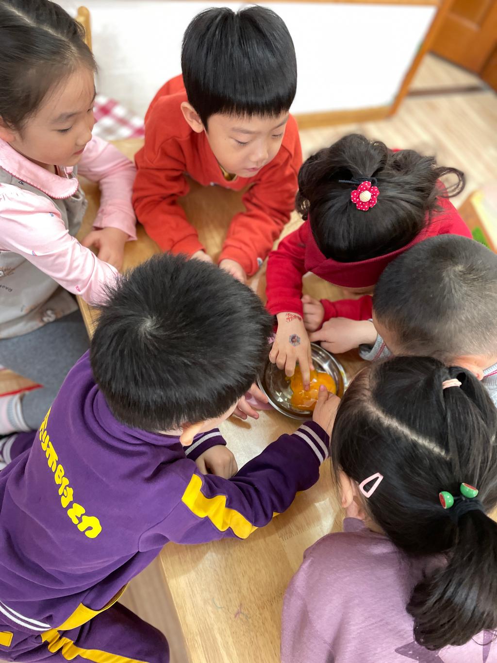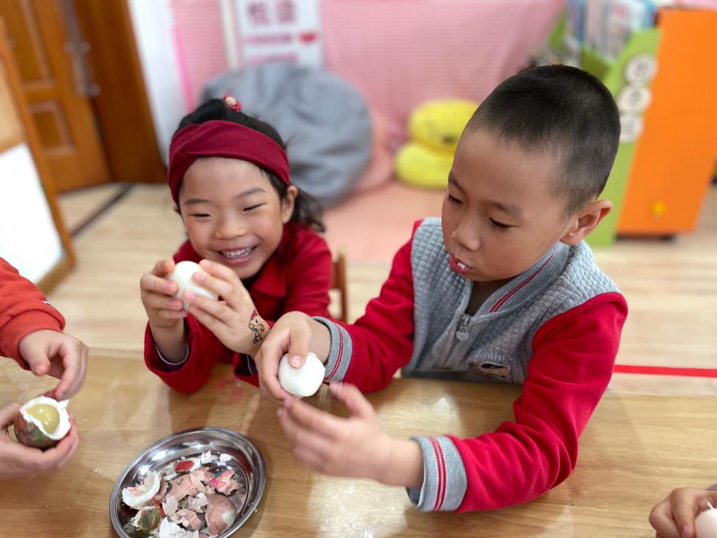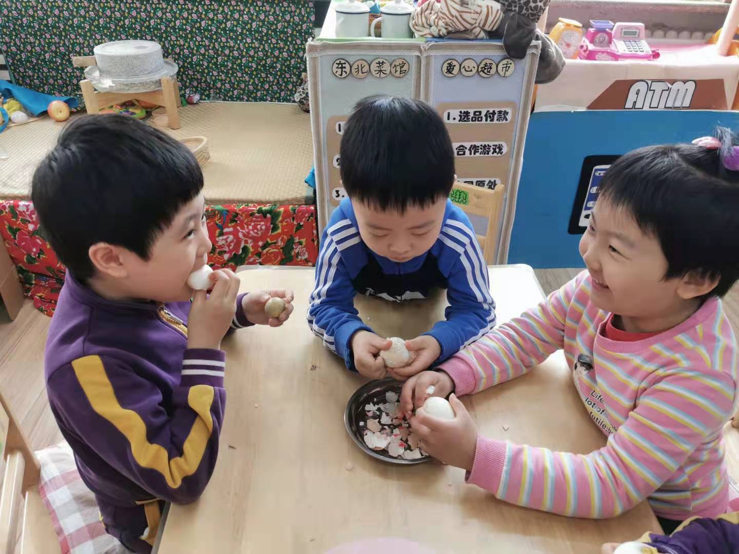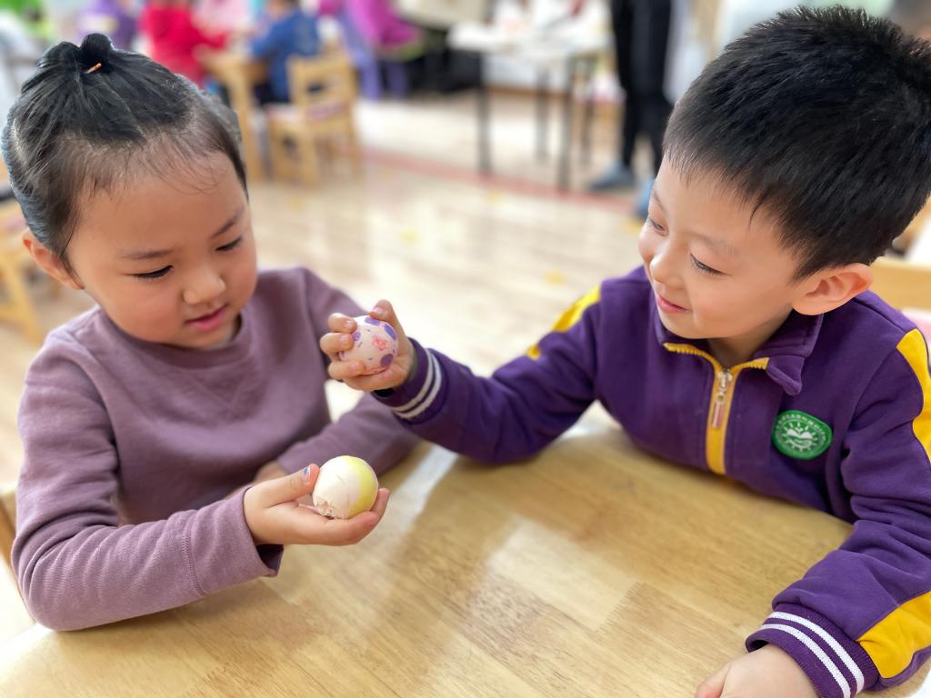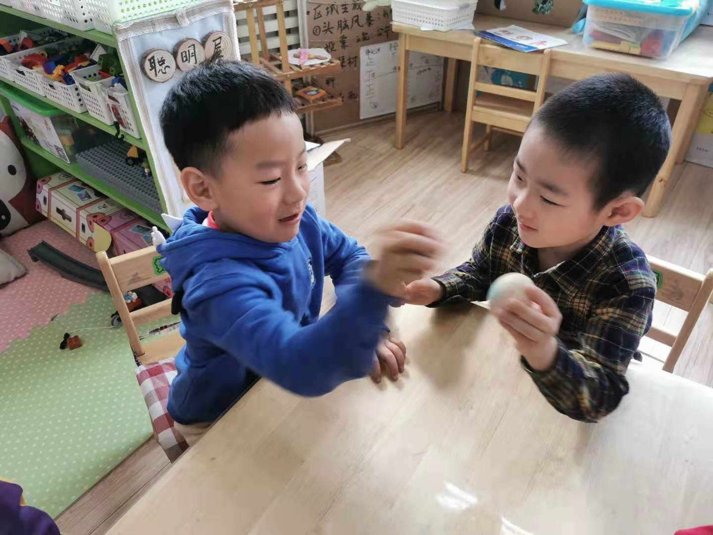 在帮助孩子们了解节日习俗时,他们了解到:吃鸡蛋起源于古代的上巳节,人们将鸡蛋煮熟了以后,用画笔在鸡蛋上画上颜色,然后投入附近的河中,等在下游的人争捞、剥皮而食,食后便可孕育。清明节吃鸡蛋还寓意着着这一年里,无病无灾健健康康。此外,还有“撞鸡蛋”的习俗。清明节对于小朋友们来说也许比较陌生,但是小朋友们对于在清明节吃鸡蛋、撞鸡蛋这一习俗却很熟悉,这也是孩子们的最爱。大家都会纷纷拿着自己家煮的鸡蛋逐一碰撞,图个好彩头,看谁的鸡蛋硬。如果哪个小朋友的鸡蛋皮结实,把另外的鸡蛋撞破了,那这个小朋友今年就会长得又高又壮。4月4日是清明节,我们设计的活动内容以“玩”鸡蛋为主,小朋友们在生活中经常接触熟鸡蛋,可是他们却很少接触生鸡蛋,他们迫切的希望自己能够有机会亲自敲开生鸡蛋来看看,可是我们在生活中却很少为幼儿提供尝试的机会。小朋友们都想体验一下敲生鸡蛋的感觉,他们都想看看生鸡蛋和熟鸡蛋有什么不一样,为了让小朋友们在自主探索中去真正“玩”鸡蛋。朵朵二班小朋友们开始了探究生鸡蛋、画鸡蛋、撞鸡蛋、吃鸡蛋的游戏之旅。开展了“趣玩鸡蛋”的清明节活动。