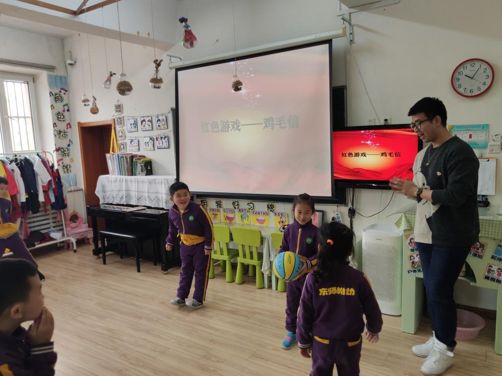 故事听完了,小朋友们意犹未尽,哥哥姐姐带领小朋友们一起玩起了“红色游戏——鸡毛信”。孩子们争先恐后的扮演起小海娃的角色,发动小脑筋将鸡毛信的信息传递出去......