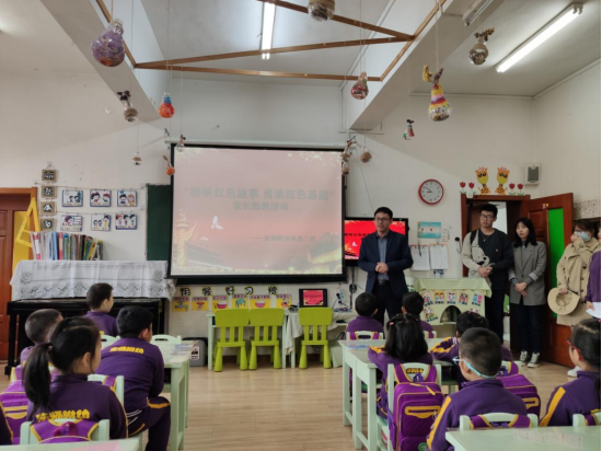 伴随着果果二班小朋友专注、深情地歌唱,优美的旋律和动人的故事,经典红歌《歌唱二小放牛郎》拉开了“聆听红色故事 传承红色基因”家长助教活动的序幕。