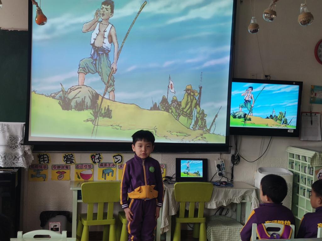 秦子旻讲述了抗日小英雄——王二小坚决不当逃兵,努力去面对困难的故事。通过王二小的故事,孩子们知道在生活和学习中我们要更加自立自强,加倍珍惜革命前辈留给我们的幸福生活,努力把幸福快乐带给身边的每一个人。