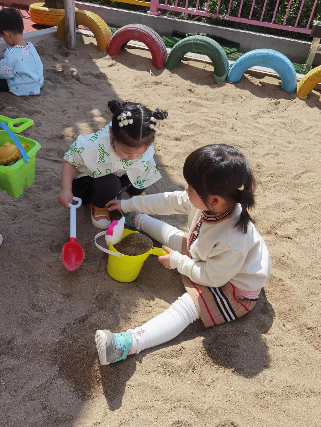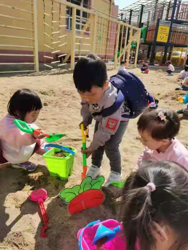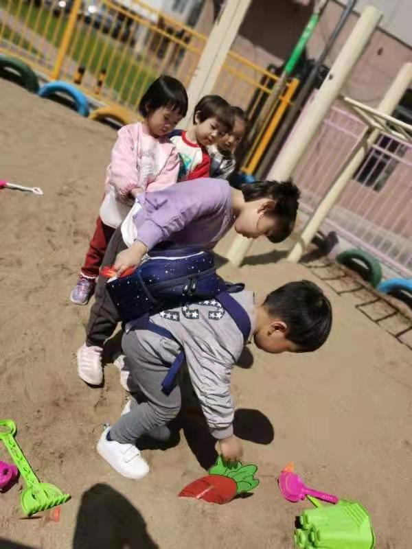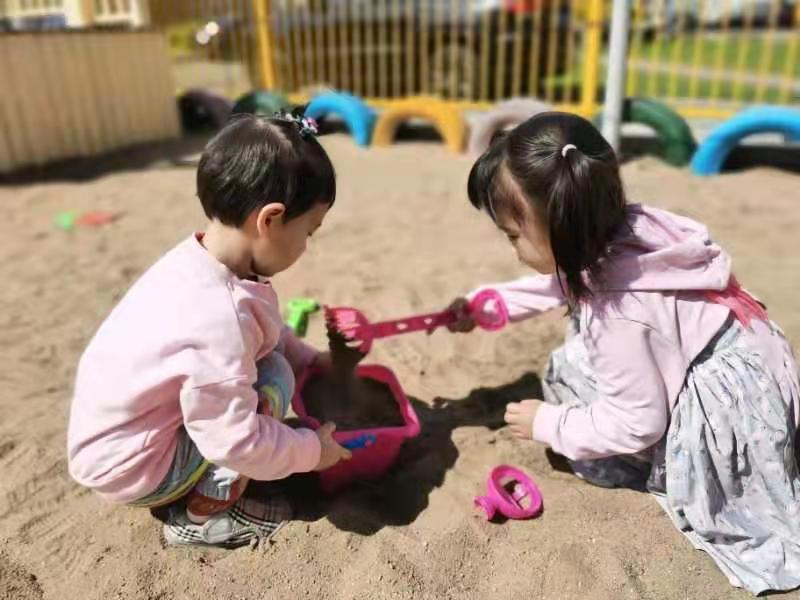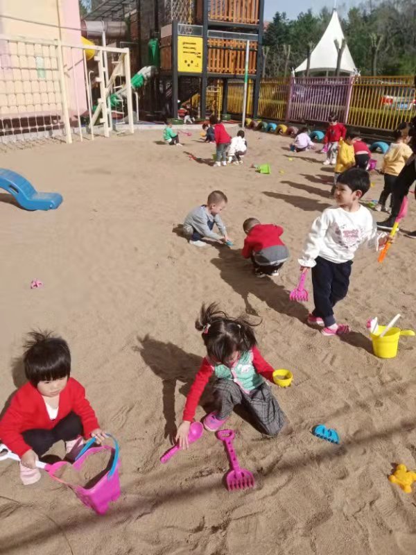 在玩沙活动中,宝贝们结交了新的伙伴,学会了如何和同伴合作游戏,尝试在同伴的帮助下解决问题。我们也看到了宝贝们的兴奋与惊奇,和对活动的投入与忘我。宝贝们在玩沙游戏中互相合作,体验到了无穷的欢乐。