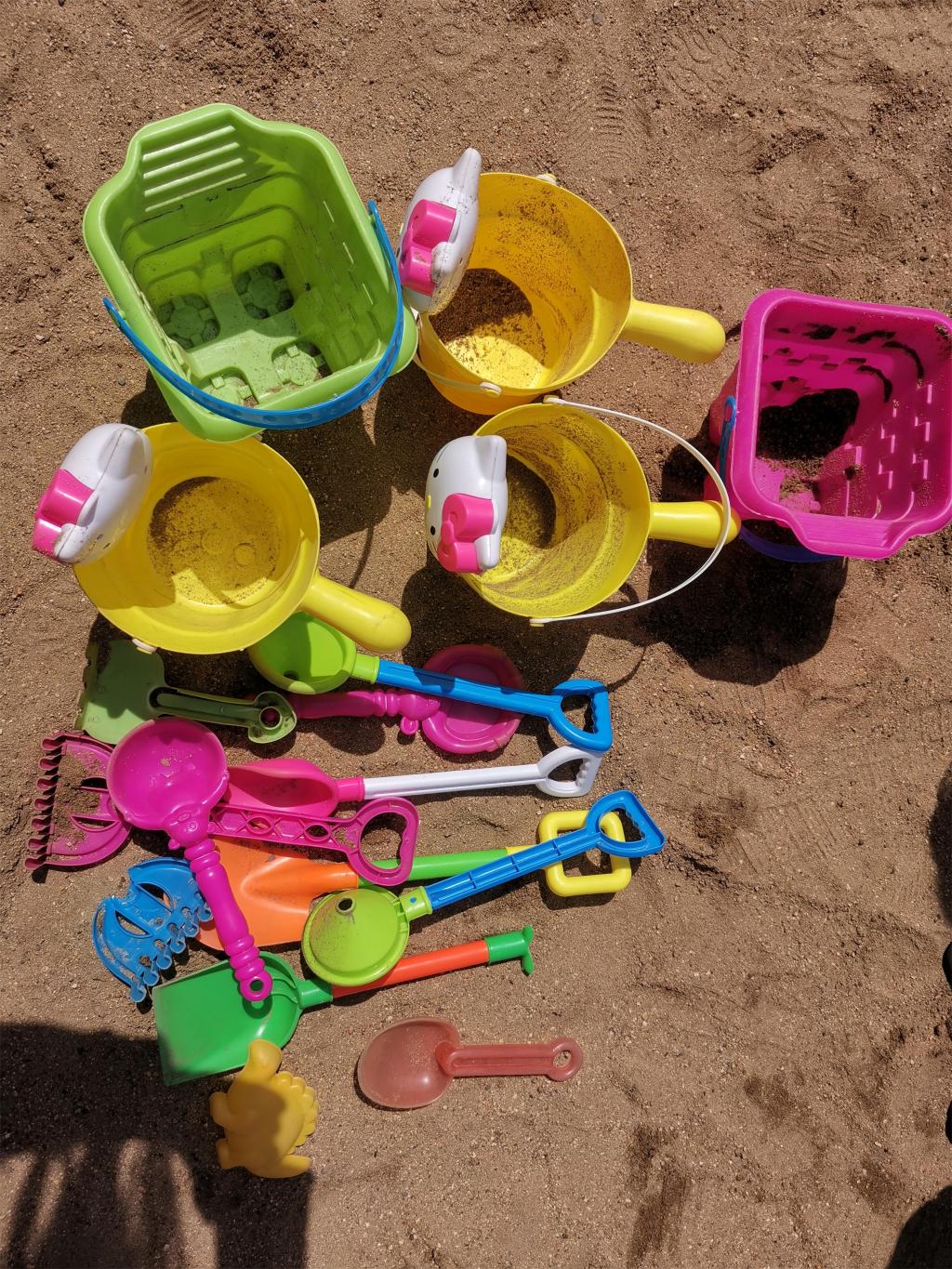 刚刚踏进沙池,宝贝们就迫不及待的用自己的小手抓一抓沙子,感受沙子的温度和触感。宝贝们自主选择,尝试各种玩沙工具,小铲子、小桶、小耙子、小锹等多种多样的小工具。可以充分促进幼儿感知能力的发展、提升幼儿的想象力和创造力。在不断的尝试与选择中,宝贝们找到了自己喜欢的、适合自己的工具,手中小工具的使用也慢慢的熟练起来。