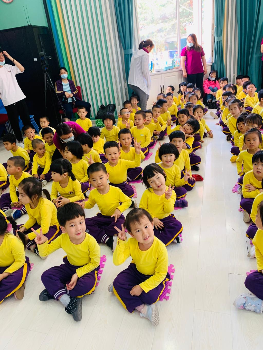 在“特殊老师们”的带领下,小朋友们学习了带有手势动作的英文数字,虽然语言不通,孩子们却学习的非常认真,跟着外国友人们一起运动着身体,让大小朋友们迅速打成一片。