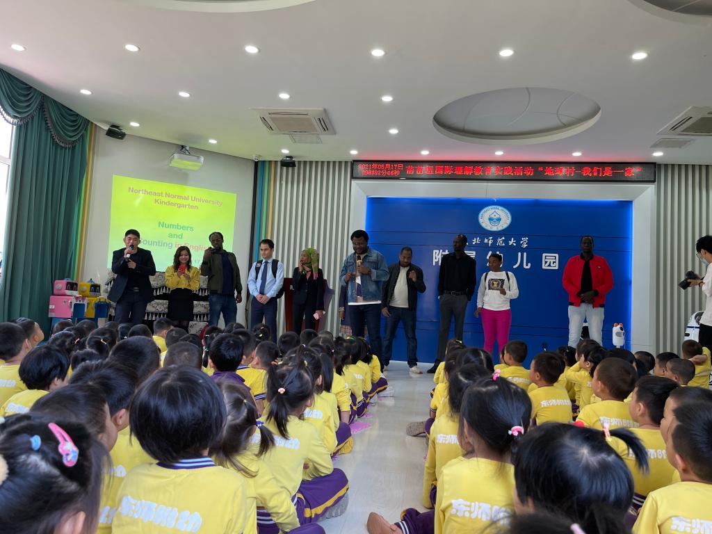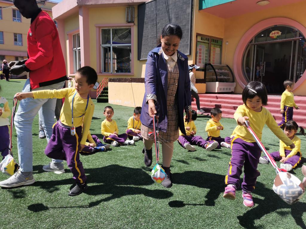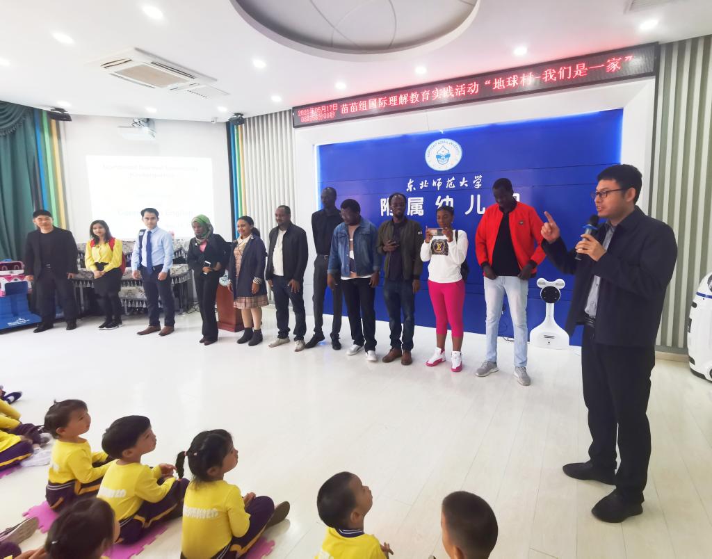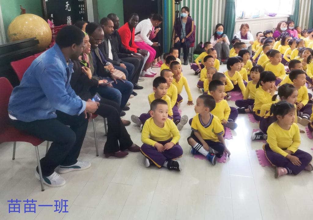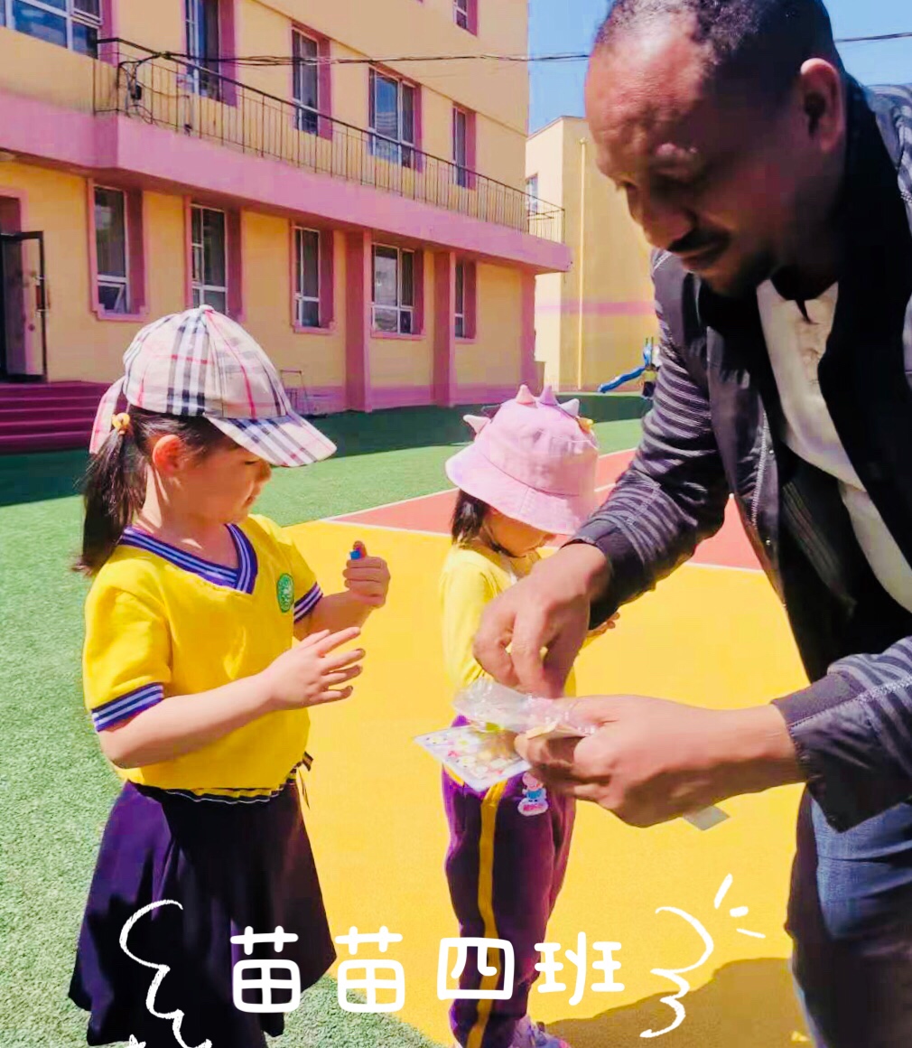 在全球化浪潮的背景下,幼儿园也需要在学前教育阶段有效的实施国际理解教育。5月17日上午,东师附幼苗苗组开展了一场别开生面的国际交流活动。本次活动邀请到的是苗苗六班西西小朋友的爸爸—东北师范大学国际合作与交流处的张利君老师和商务部援外学历学位项目的学员代表阿代、苏三、伊莎卡、阿曼多等走进幼儿园,与孩子们交流互动,共度充满异国风情的快乐时光。