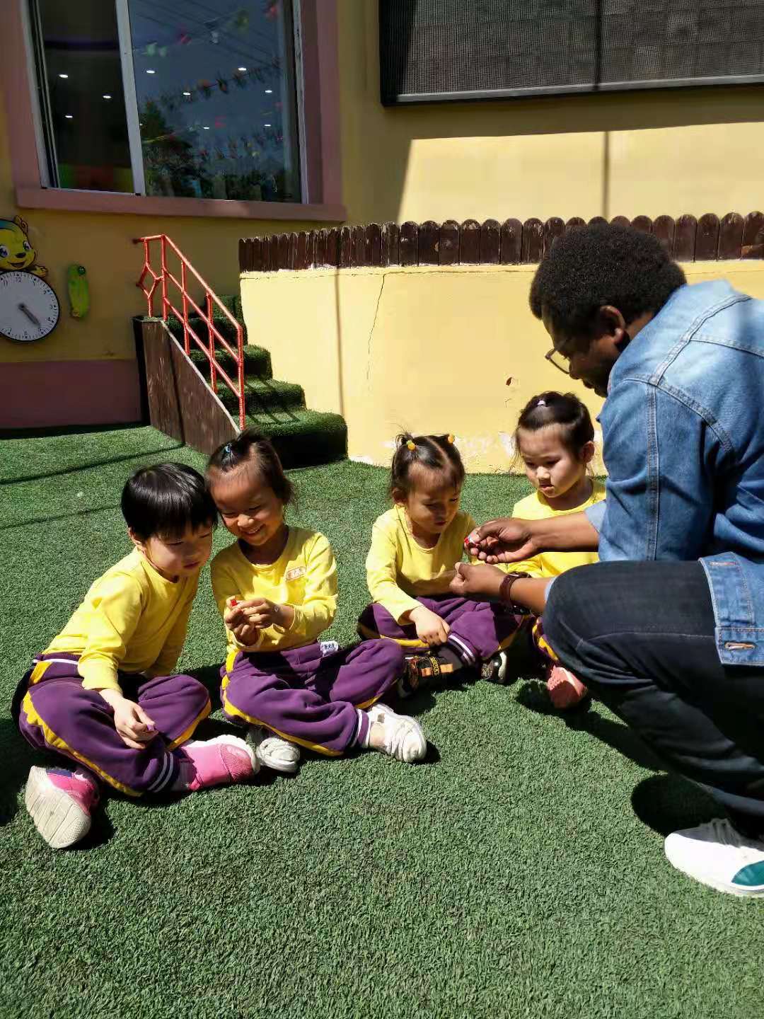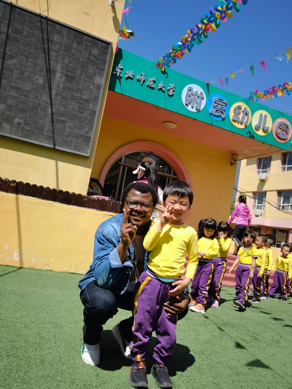 通过外国友人的视频分享,孩子们发现,非洲的幼儿园也和我们一样,唱歌、跳舞、做游戏,甚至他们园服的颜色跟我们一样是相同的黄色!