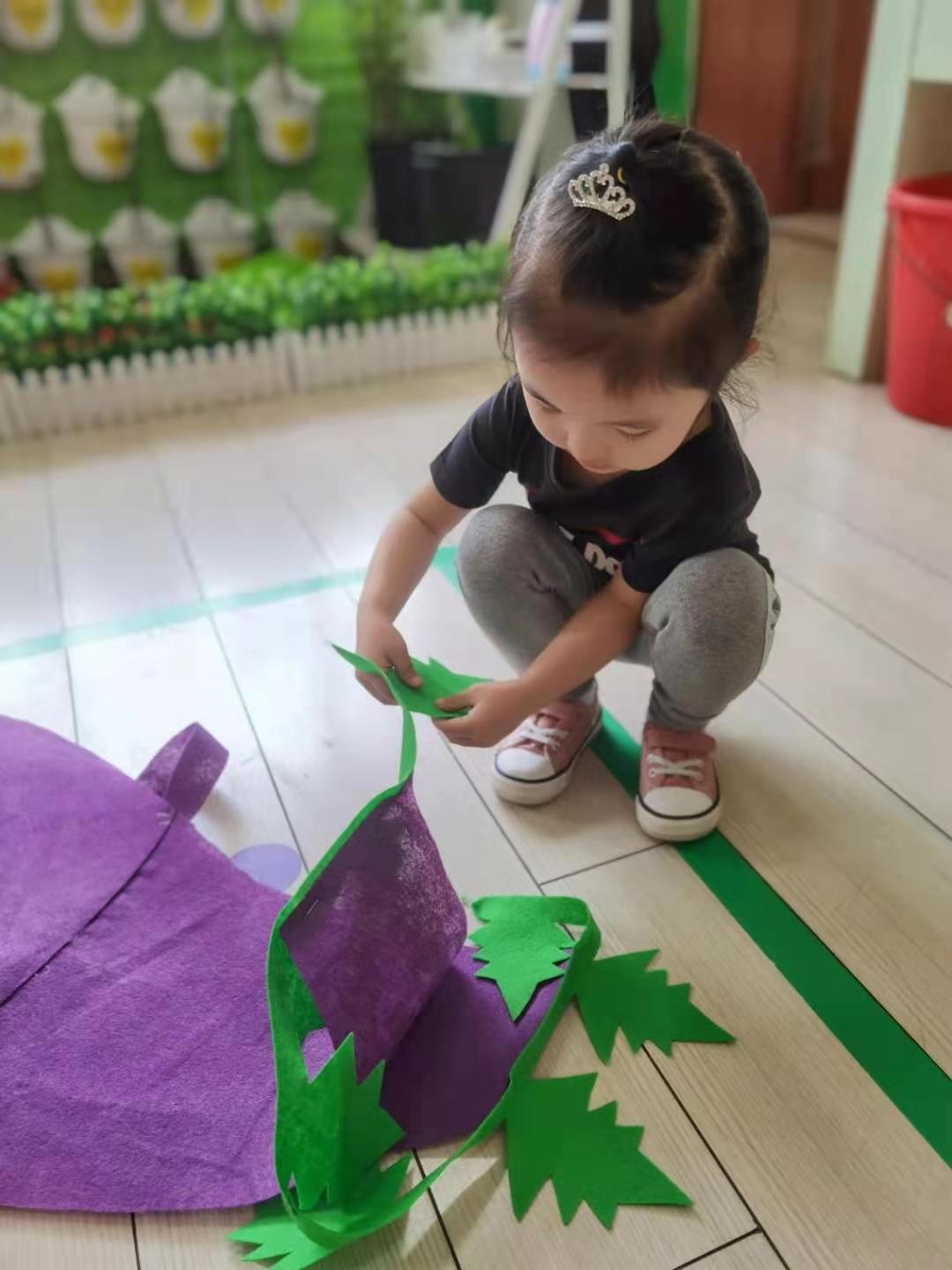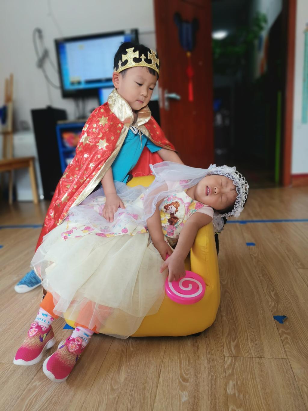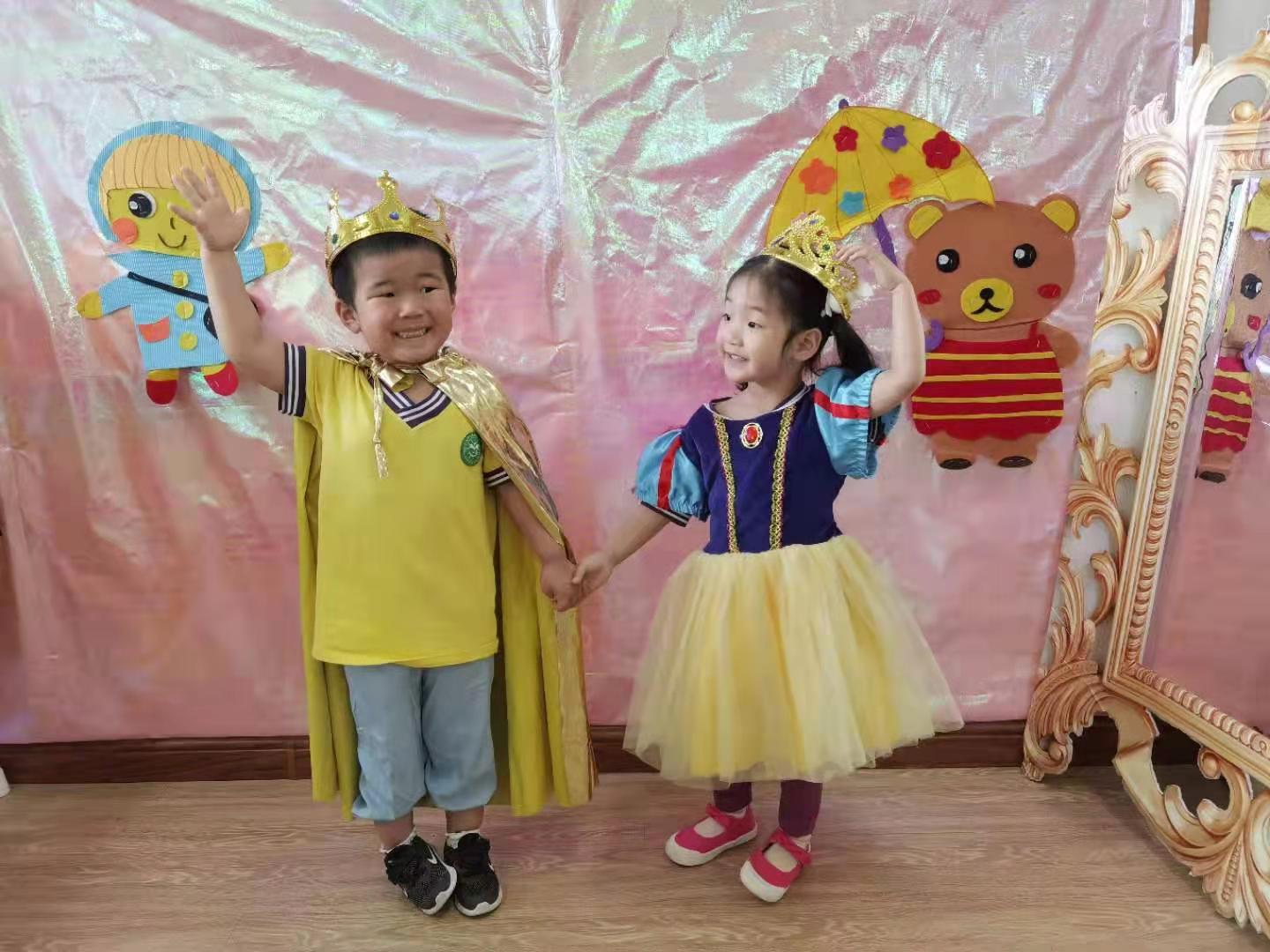 还穿上自己喜欢的服装,有的扮演月亮公主,有的扮演茄子皇后,有的扮演蔬菜超人……自己模仿着,自由发挥进行表演。在表演中,小朋友们发挥了自己的想象力,更加丰富了故事情节以及角色形象。充分展现了孩子们的创造力。