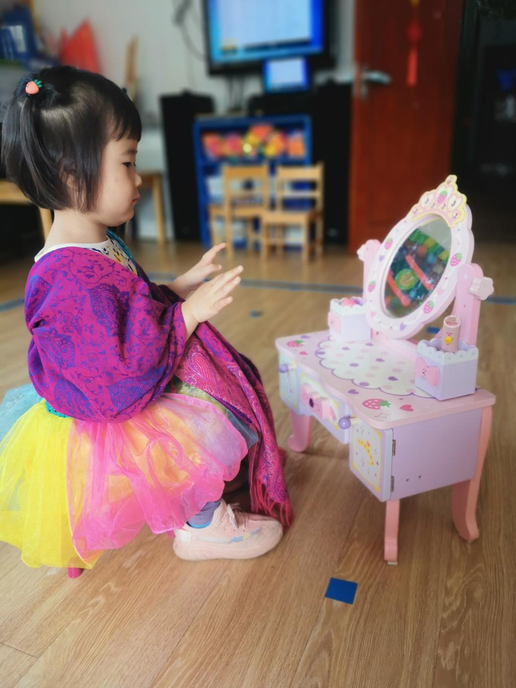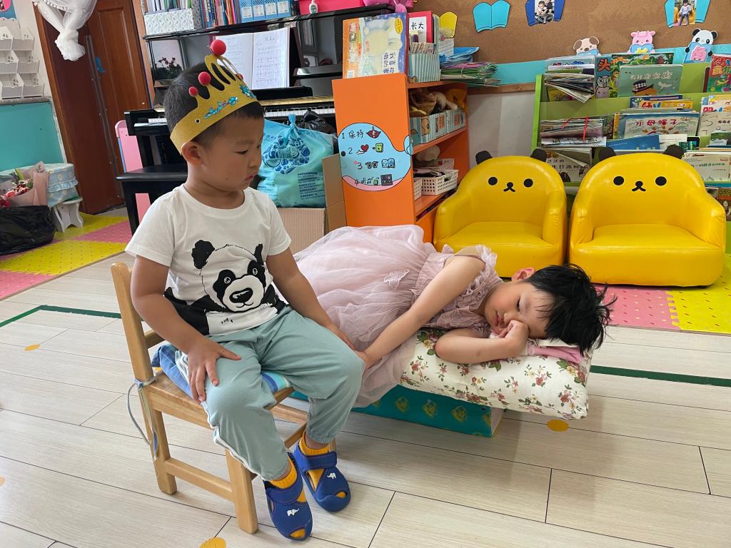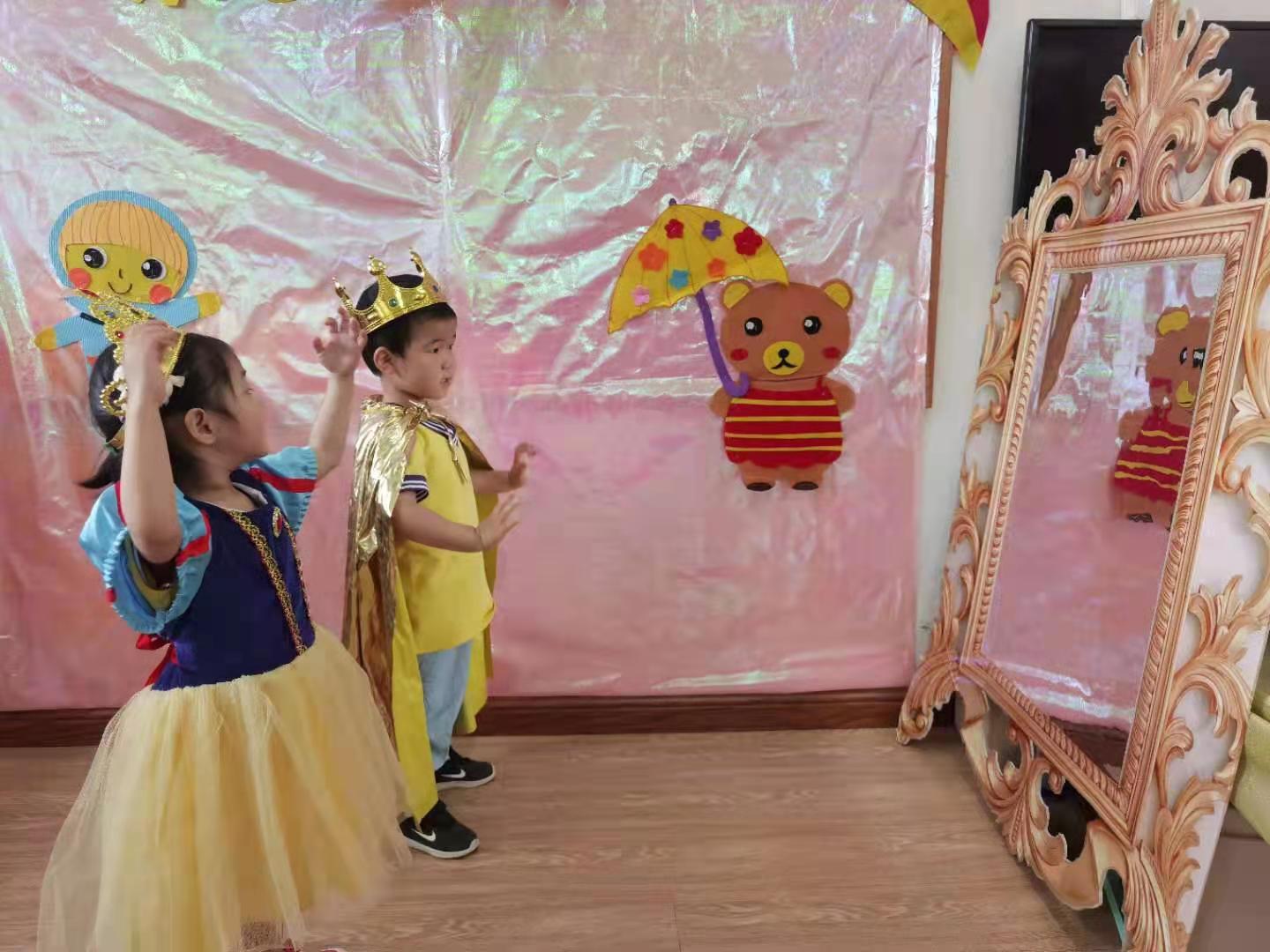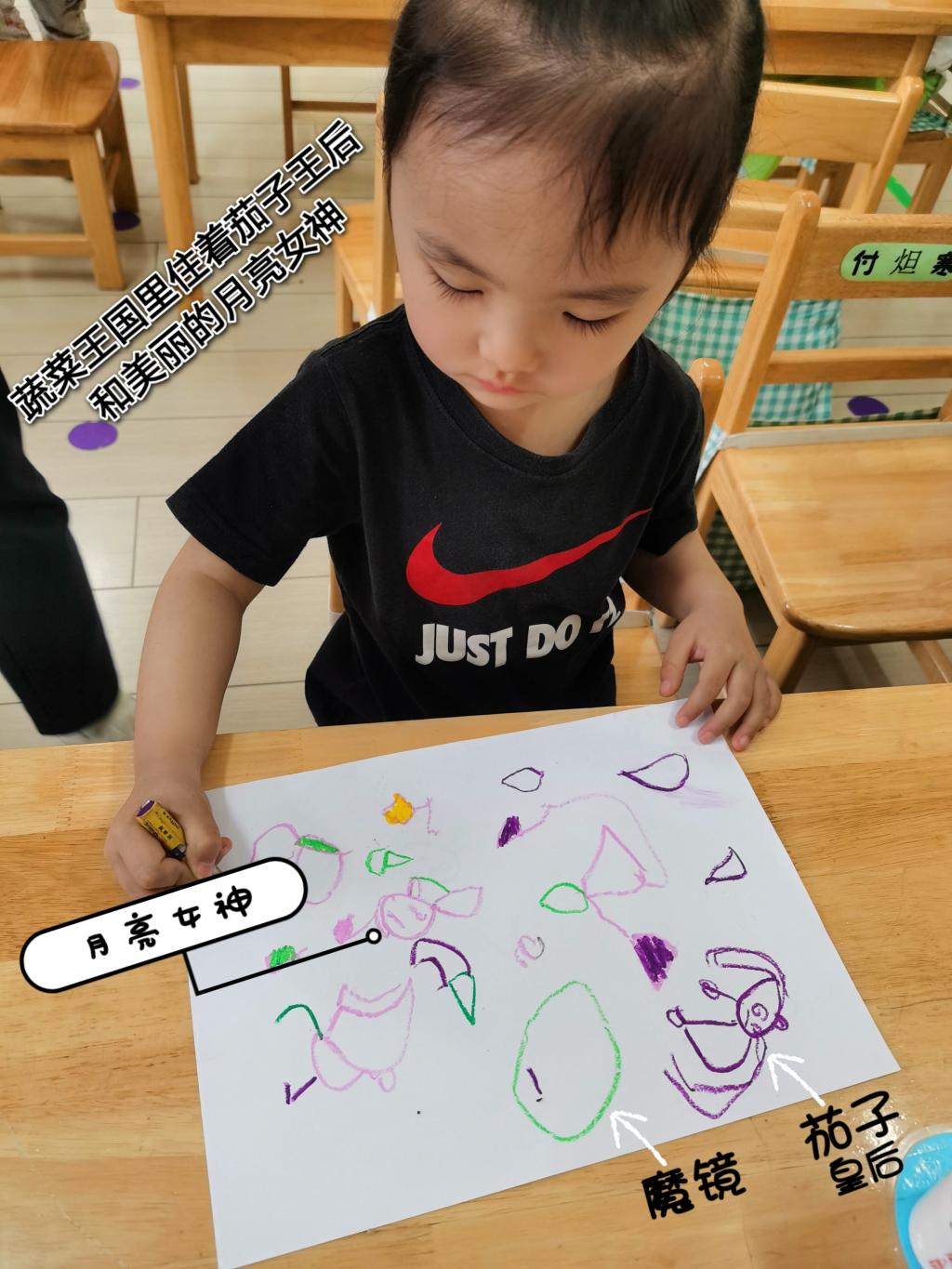 还穿上自己喜欢的服装,有的扮演月亮公主,有的扮演茄子皇后,有的扮演蔬菜超人……自己模仿着,自由发挥进行表演。在表演中,小朋友们发挥了自己的想象力,更加丰富了故事情节以及角色形象。充分展现了孩子们的创造力。