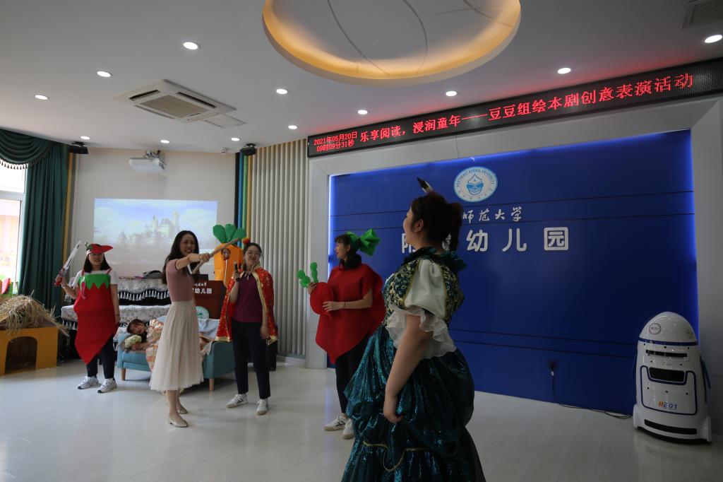 为了迎接六一国际儿童节的到来,5月20日,豆豆组的教师们经过了近一个月的精心准备,为小朋友们表演了好看的绘本剧《蔬菜王国》。