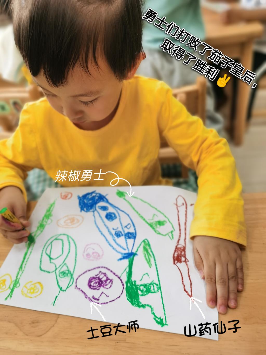 小朋友们非常喜欢这个绘本剧,表演结束后。小朋友们仍意犹未尽,他们通过绘画,把儿童剧中精彩片段和经典角色画出来。