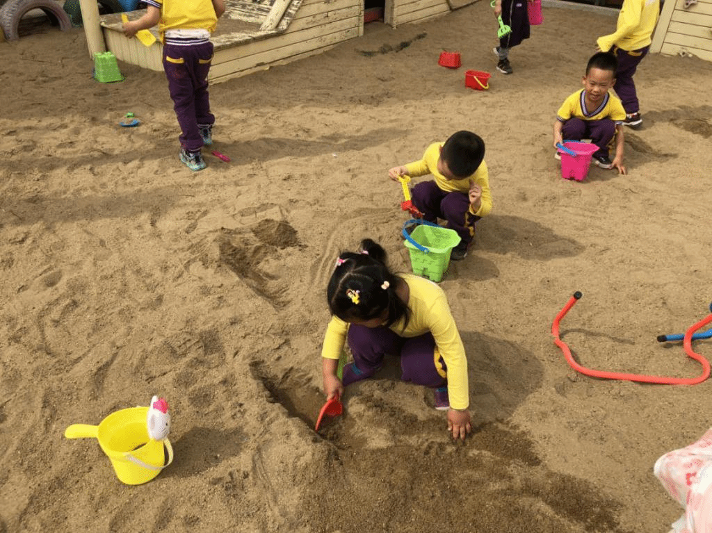 小朋友们眼中的世界是五彩斑斓的,同样一片沙池,换一种方式,孩子们一样能发现其中的乐趣和隐藏的生活知识,既锻炼了小朋友的团结合作精神,又提高了小朋友的专注力,相信这一定是一次难忘的寻宝活动。