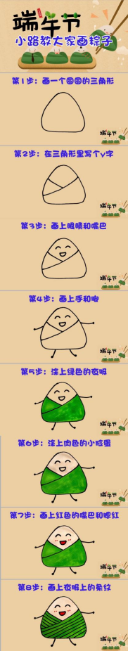 品尝完香甜可口的粽子后一起来画粽子吧!小路准备了完整的画粽子步骤图教小朋友们画粽子,在小朋友们绘画时小路一直作为小老师进行专业指导。小朋友们用自己灵巧的小手画出了可爱的粽子,体验绘画的快乐,用心感受端午浓浓的文化气息。