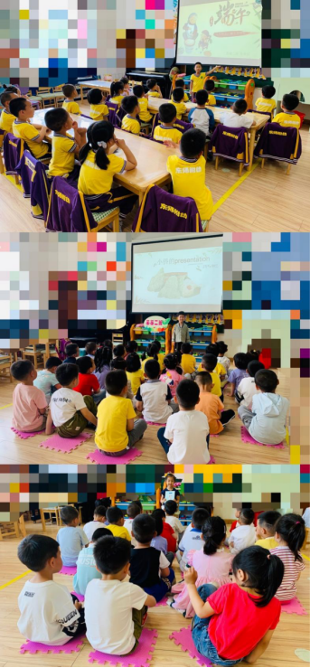 什么是端午节?端午节要做什么呢?小侨、林溪、畅畅分别通过自制图书、图片、视频、幻灯片等多种方式向小朋友们讲述了端午节的由来,让小朋友们了解了各地的习俗。小朋友们初步感知了中国悠久的历史,同时萌发了强烈的民族自豪感。