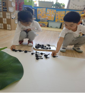 为了更好的观察小蝌蚪、宝贝们还在自己的家中养了很多可爱的小蝌蚪,观察蝌蚪生长的变化。通过亲子阅读绘本,小朋友们还一起绘画小蝌蚪,并在幼儿园分组利用彩泥制作小蝌蚪,还与爸爸妈妈一起挑选了自己扮演角色的演出服装,为绘本剧演出做了充分的前期准备。