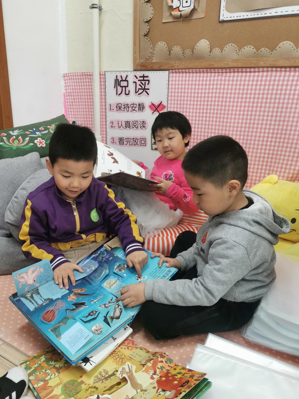 阅读浸润童心,让故事丰富童年。阅读活动作为我园的特色活动,孩子们在幼儿园和老师一起欣赏绘本故事,通过表演、创编、绘画、区域活动等多种形式感受阅读的快乐。