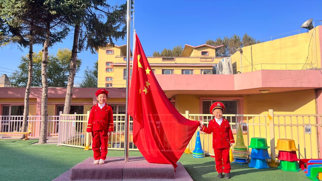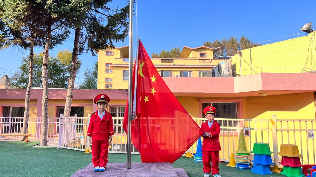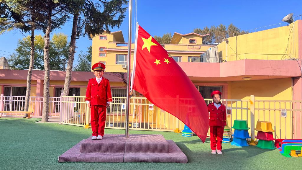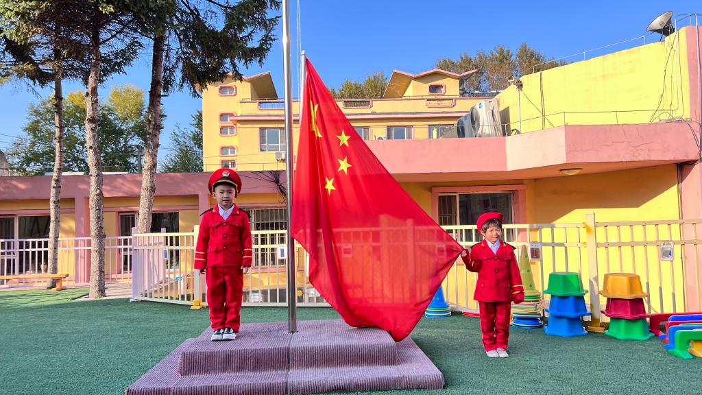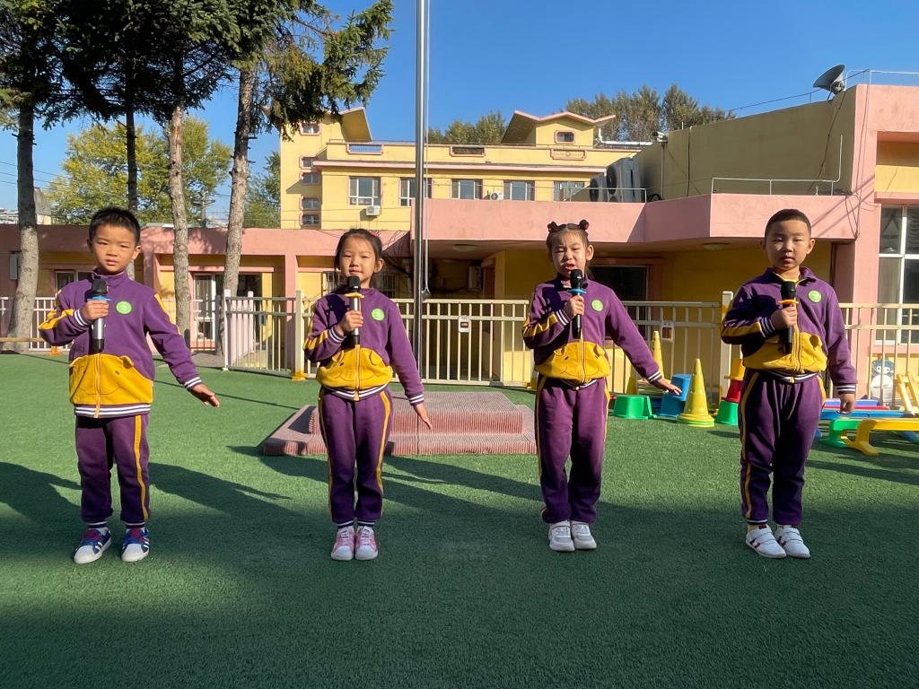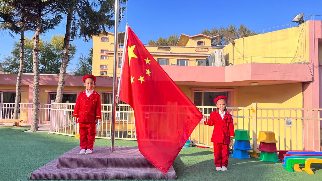 嘹亮的国歌响起,鲜艳的五星红旗升起,老师幼儿共同仰望,心向国旗,行注目礼。孩子们用稚嫩的童声唱响国歌,用坚定的眼神望着冉冉升起的五星红旗,祖国的花朵正在悄然绽放。