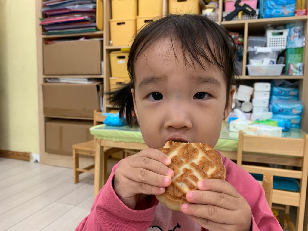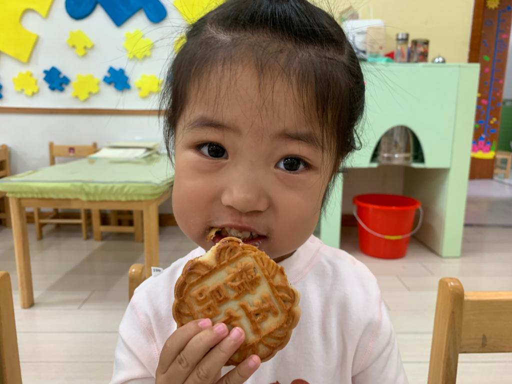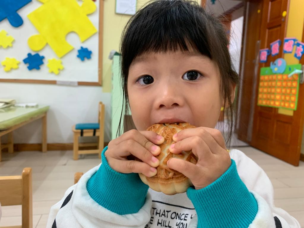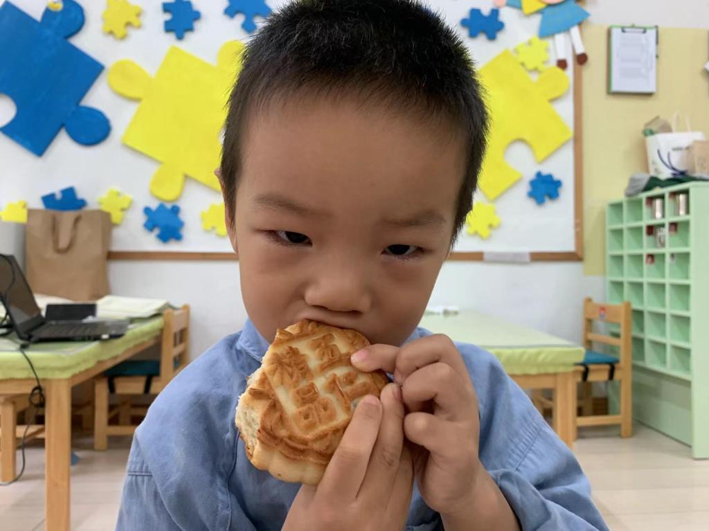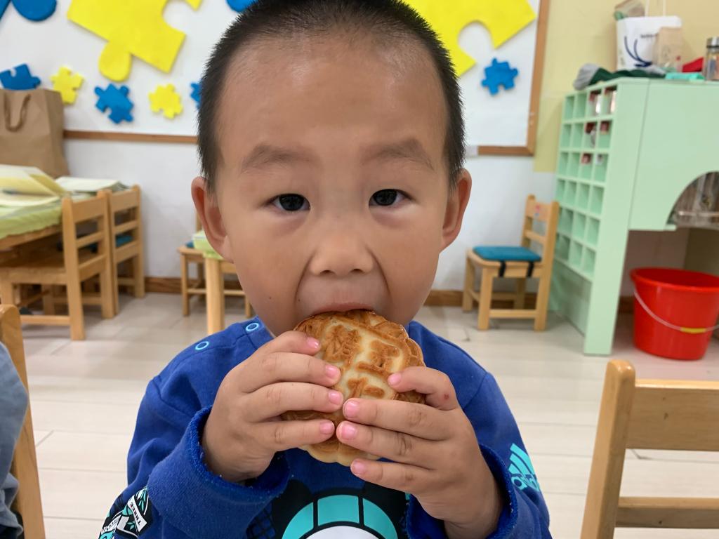 我们一起品尝了小朋友分享的月饼,在幼儿园里度过了一个不一样的中秋节。