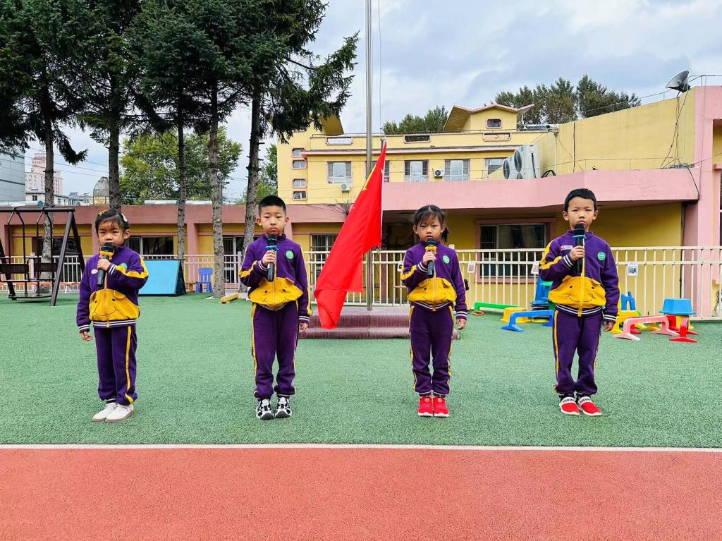 伴着雄壮的国歌,五星红旗冉冉升起,孩子们稚嫩的童声和望着国旗坚定的眼神,让我们看到祖国的花朵正在悄然绽放,爱国的种子也在孩子们的心田种下!