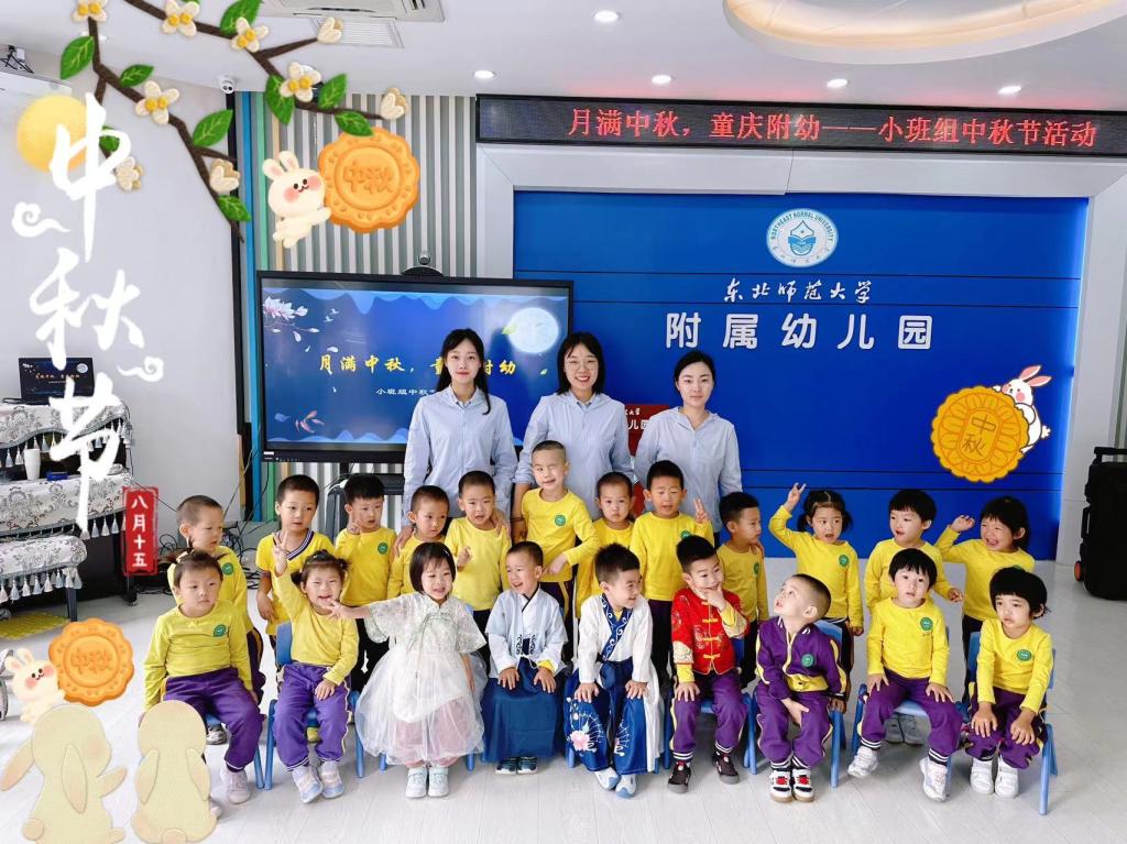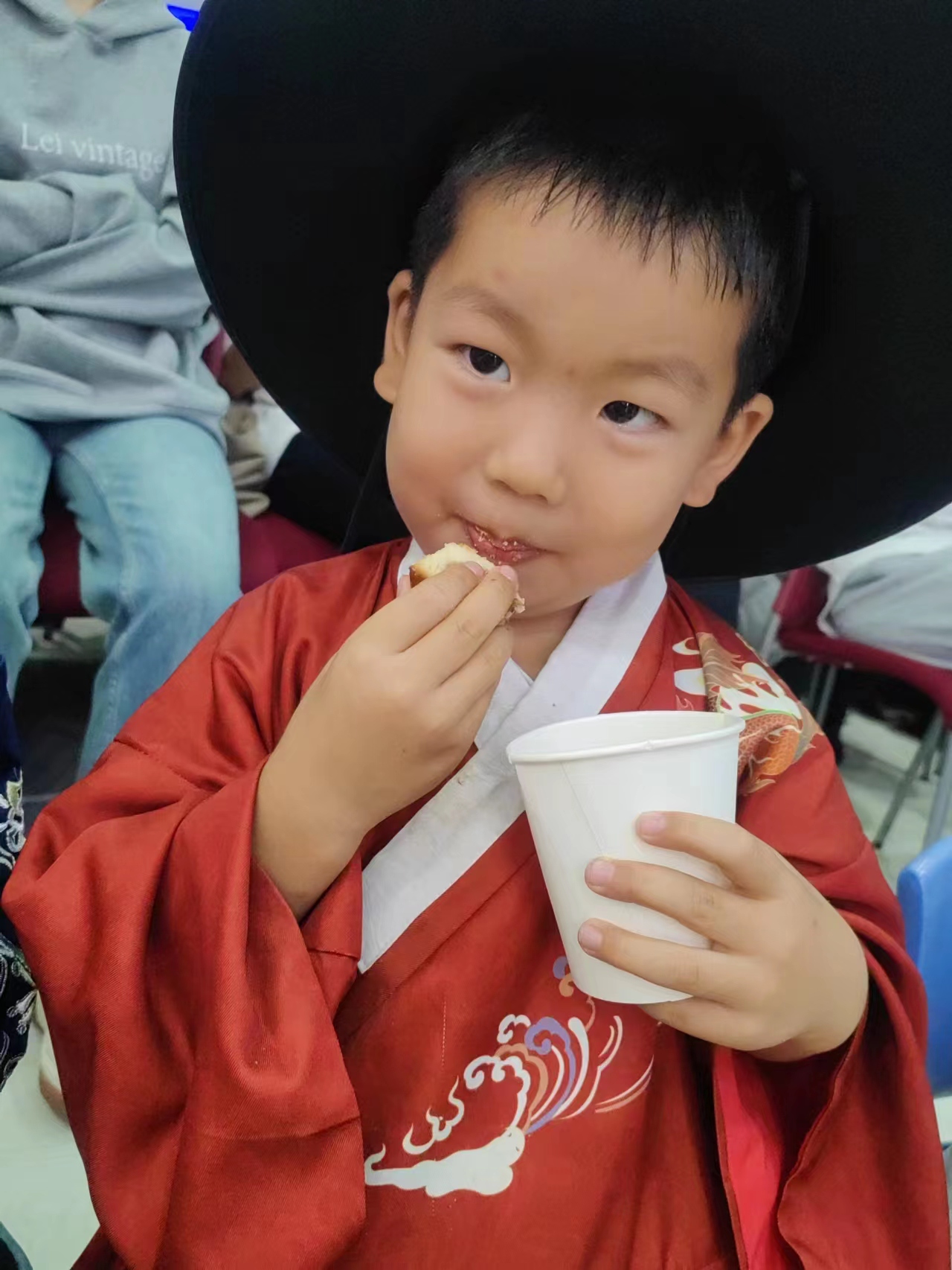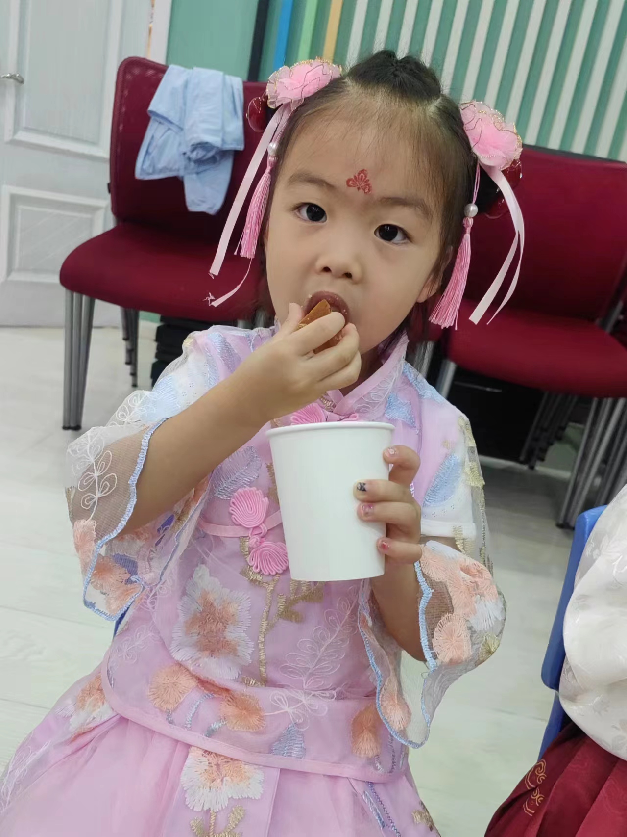 在这个满载喜悦的金秋时节,我们又迎来了象征着团圆、欢聚与祝福的中华民族传统节日——中秋节。为了给孩子们的童年浸染上中华民族传统文化的色彩和底色,弘扬和传承中华民族传统文化,苗苗组的小朋友们欢聚在一起,开展了“月满中秋,童庆附幼”庆中秋主题活动。小朋友们通过穿汉服、品月饼、歌表演、观嫦娥奔月,了解中秋节的由来,萌生了热爱祖国、热爱家乡的情感。