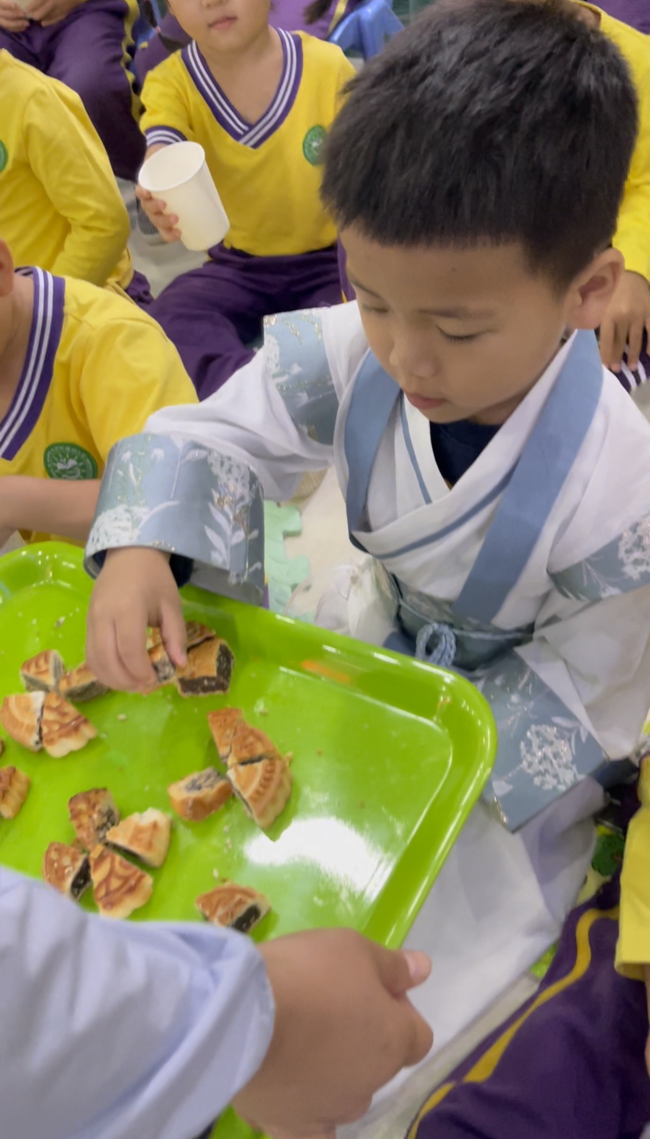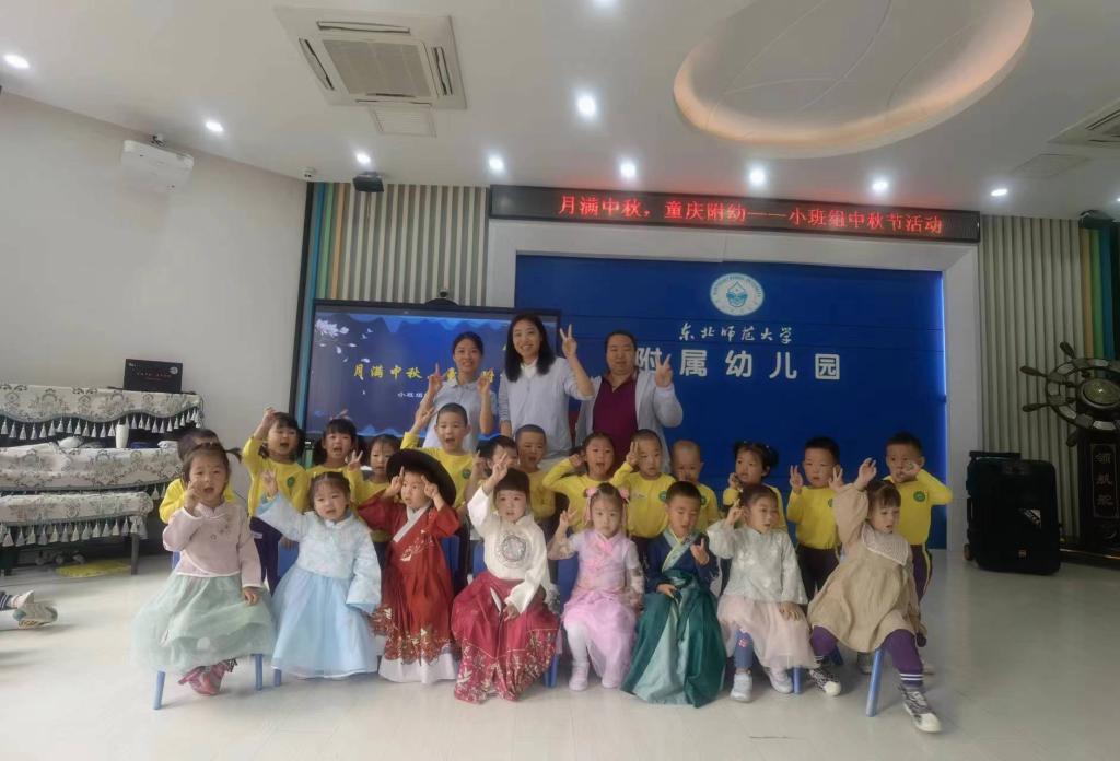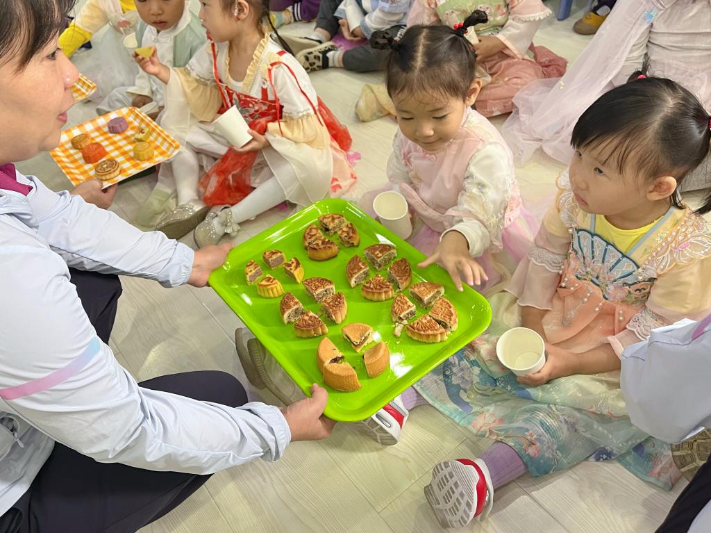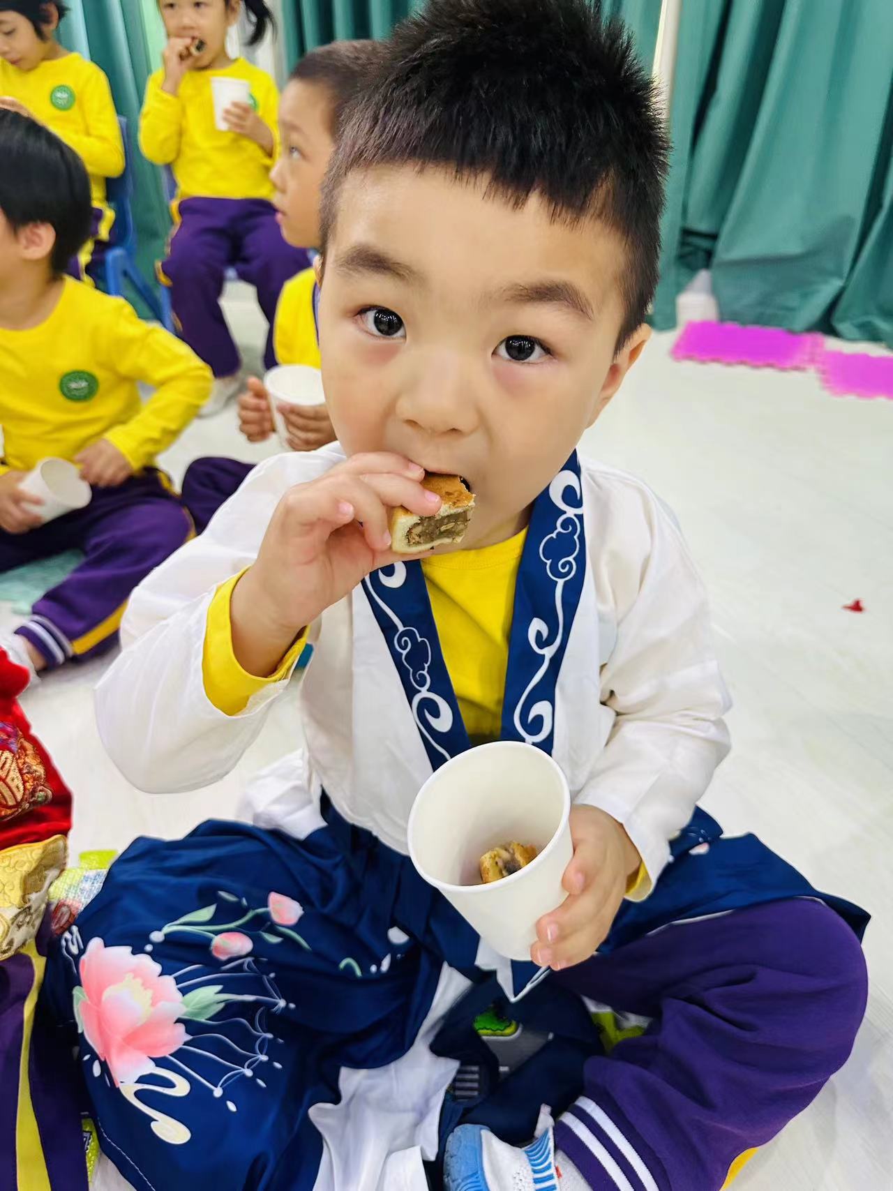 在这个满载喜悦的金秋时节,我们又迎来了象征着团圆、欢聚与祝福的中华民族传统节日——中秋节。为了给孩子们的童年浸染上中华民族传统文化的色彩和底色,弘扬和传承中华民族传统文化,苗苗组的小朋友们欢聚在一起,开展了“月满中秋,童庆附幼”庆中秋主题活动。小朋友们通过穿汉服、品月饼、歌表演、观嫦娥奔月,了解中秋节的由来,萌生了热爱祖国、热爱家乡的情感。