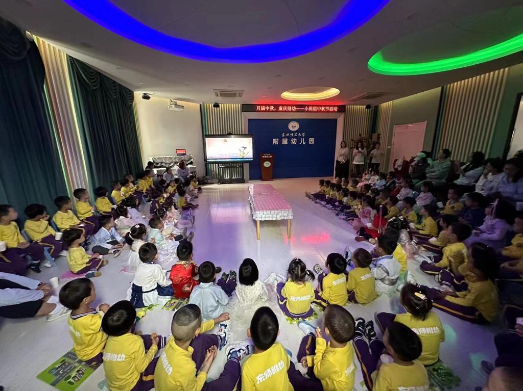 小班组的孩子们通过歌表演《中秋》表达对中秋佳节的向往与喜爱。月儿圆月儿圆,佳节共团圆,东师附幼的小朋友们也在美好的节日里相聚在一起,感受节日团圆的浓浓爱意。