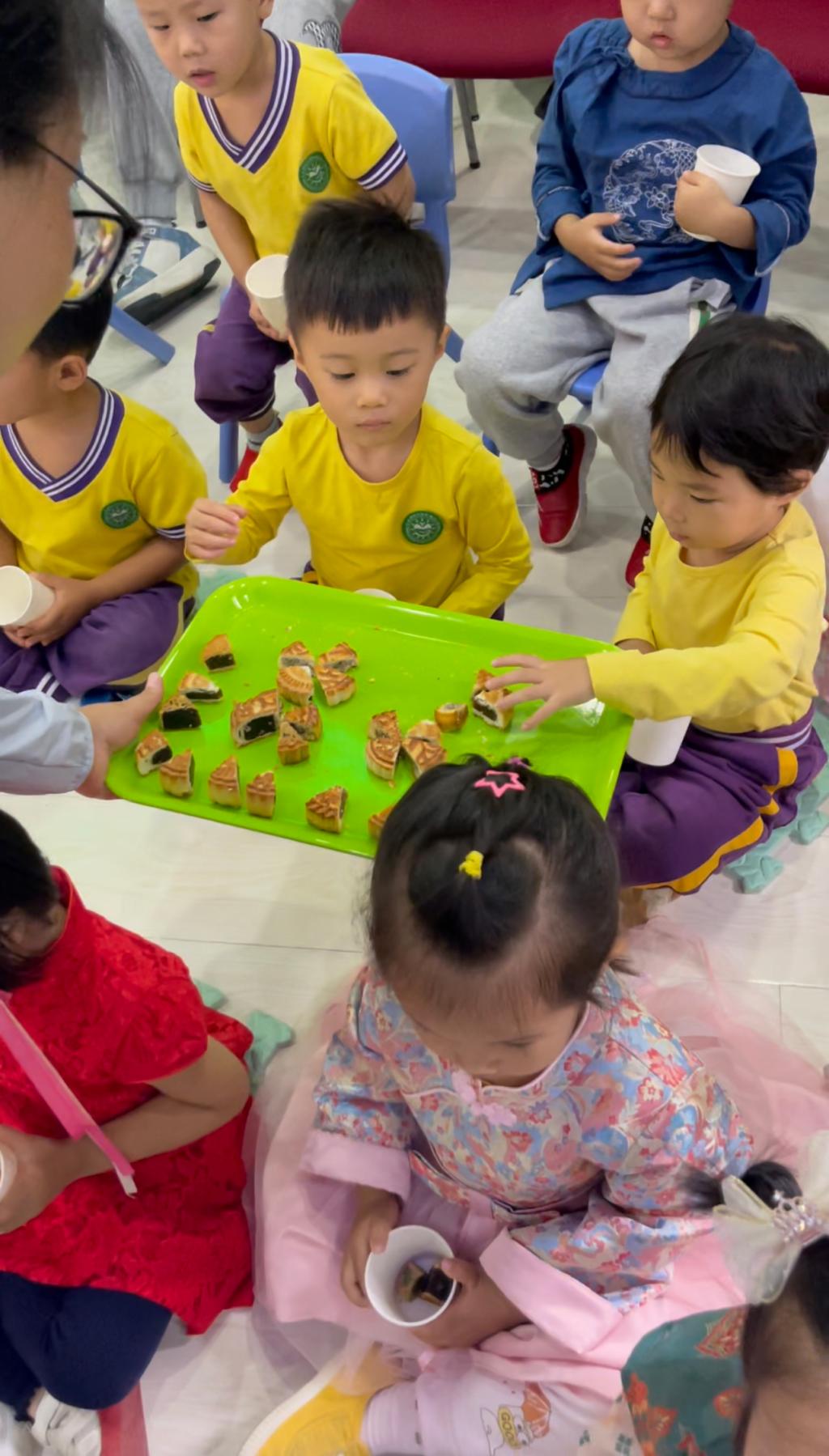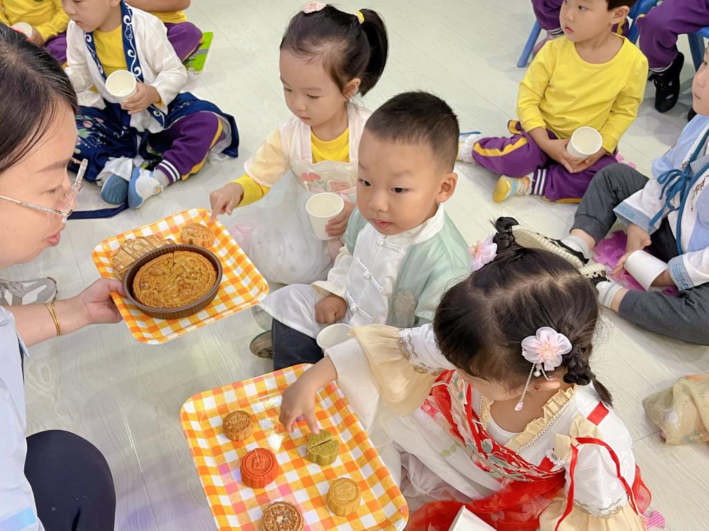 美味的月饼共同分享,小朋友们吃在嘴里甜在心里,真切的感受到了中秋佳节带来的乐趣。